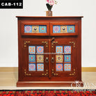 Boho Accent 2 Doors 2 Drawers Wooen Cabinet, Hand-Painted by Artisans | Shop Wooden Furniture in Kuala Lumpur Malaysia | CAB-112 (L36 W15 H38 Inches)