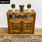 Double Top Cabinet with 2 Doors Hand-Painted Accent on Carving | Beautify your Home Interior | CAB-131 (L48 W16 H42 Inches)