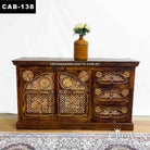 Cabinet Two Tone Hand Carving 2 Doors 3 Drawers Antique Style Solid Wood Furniture | CAB-138 (L55 W16.8 H32.5 Inches)