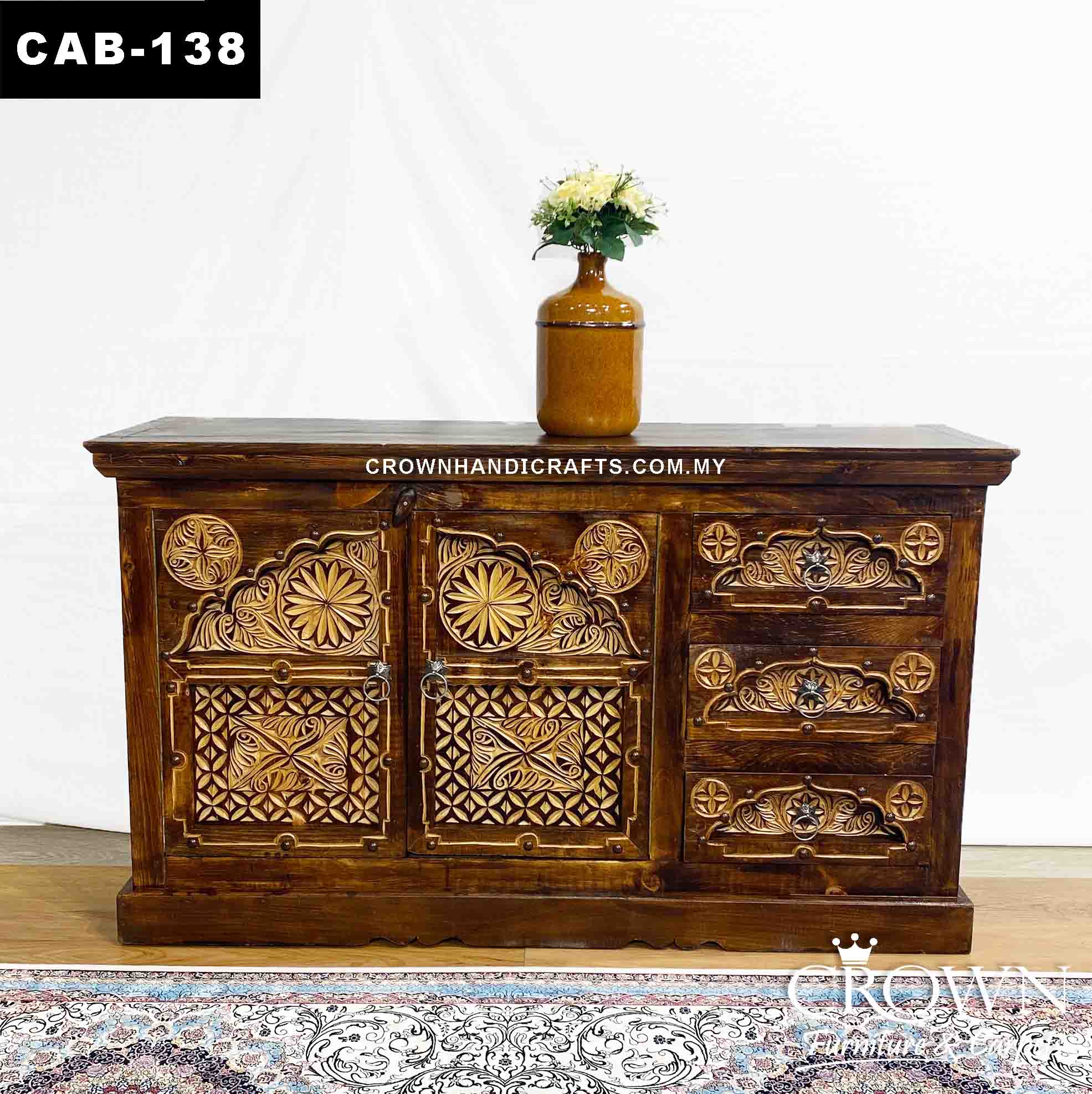 Discover the timeless elegance of this Two Tone Hand Carved Cabinet, designed to elevate your space with its intricate craftsmanship. This solid wood piece features 2 doors and 3 drawers, offering both style and functionality. The antique style finish with hand-carved detailing brings a touch of traditional artistry to your living room or hallway. Perfect for those seeking a blend of vintage charm and modern utility, this cabinet is a must-have for your home decor collection. Available at our furniture shop in Malaysia, it’s a stunning choice for your next furniture addition.