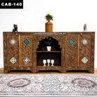 Display Cabinet Antique Style Hand Carved Indian Fusion with Moroccan Accent | Enhance your Home Interior | Solid Wood Furniture Malaysia | CAB-140 (L72 W17.2 H33 Inches)