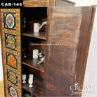 Almirah Hand Painted Bold Accent Antique Style Armoire Solid Wood Indian Heritage | CAB-145 (L42 W18 H72 Inches)
