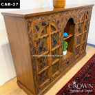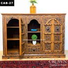 Antique Sideboard Cabinet Wooden Indian Furniture with Antique Metal Accents, Palace Design Doors Vintange Furniture in Malaysia | CAB-27 (L60 W18 H42 Inches)