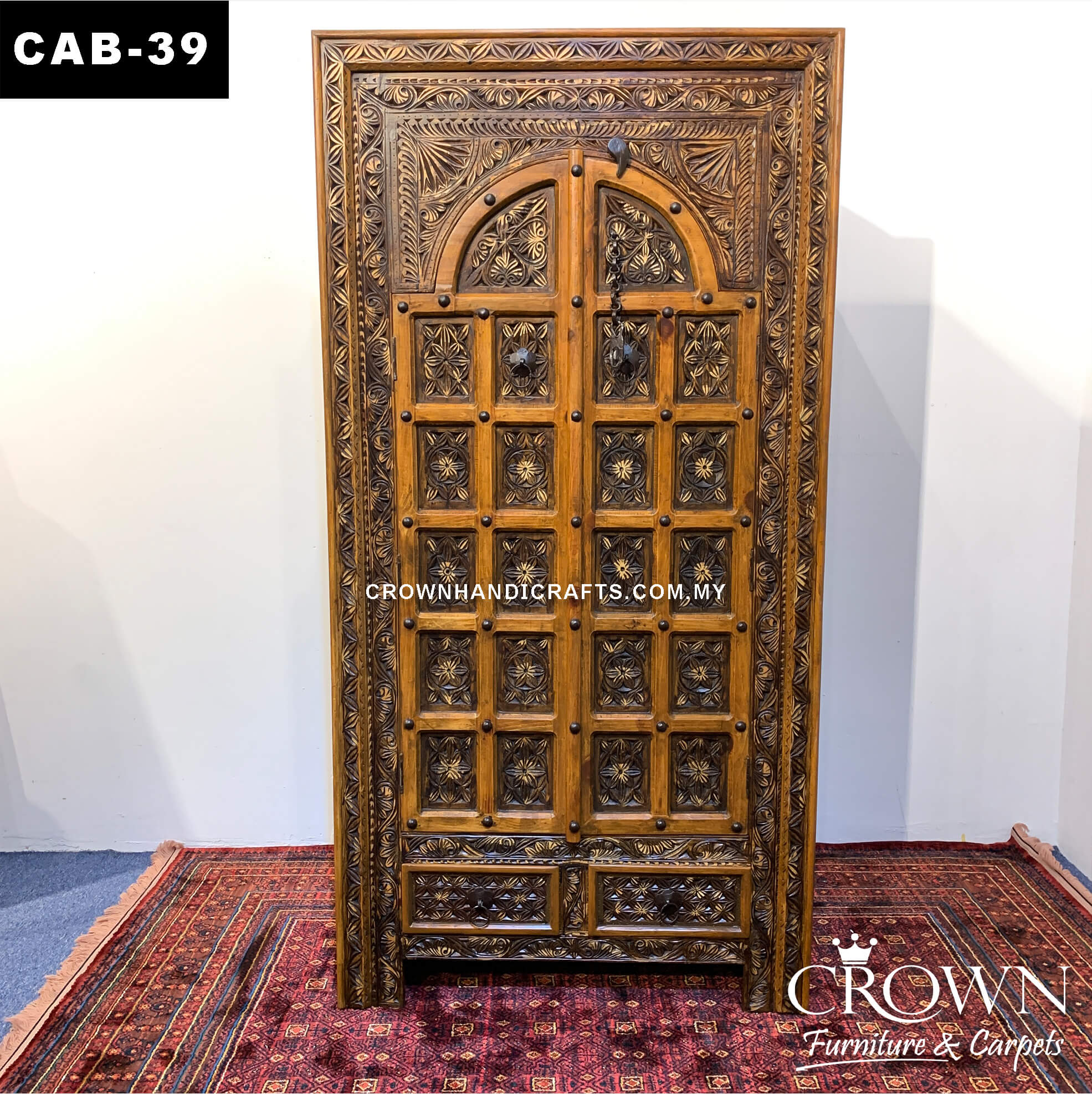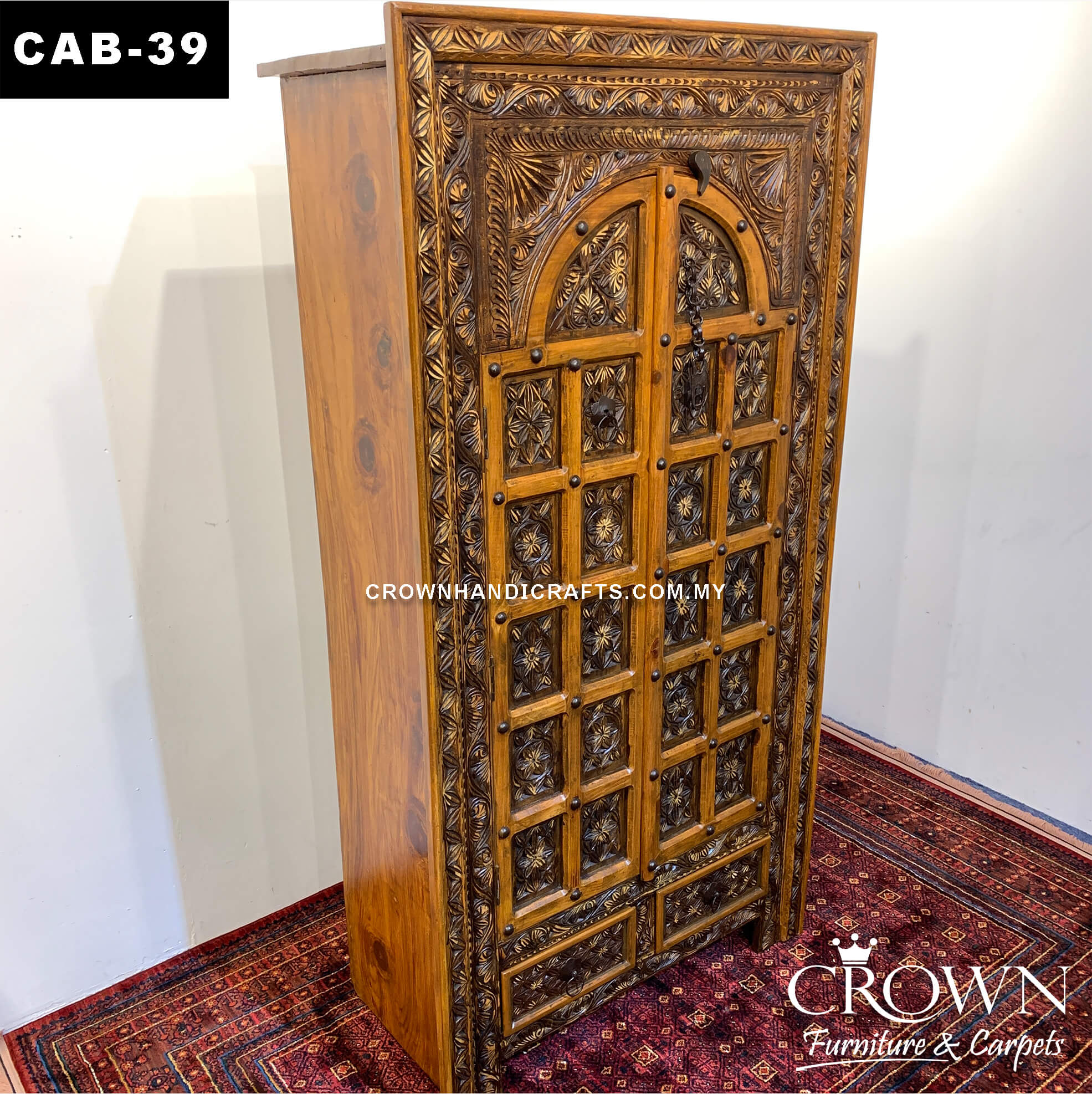Almirah Cabinet Antique Indian Palace Haveli Style Door Accent Metal Ornament, Solid Wood Vintage Furniture Shop in Malaysia | CAB-39 (L36 W18 H72 Inches)