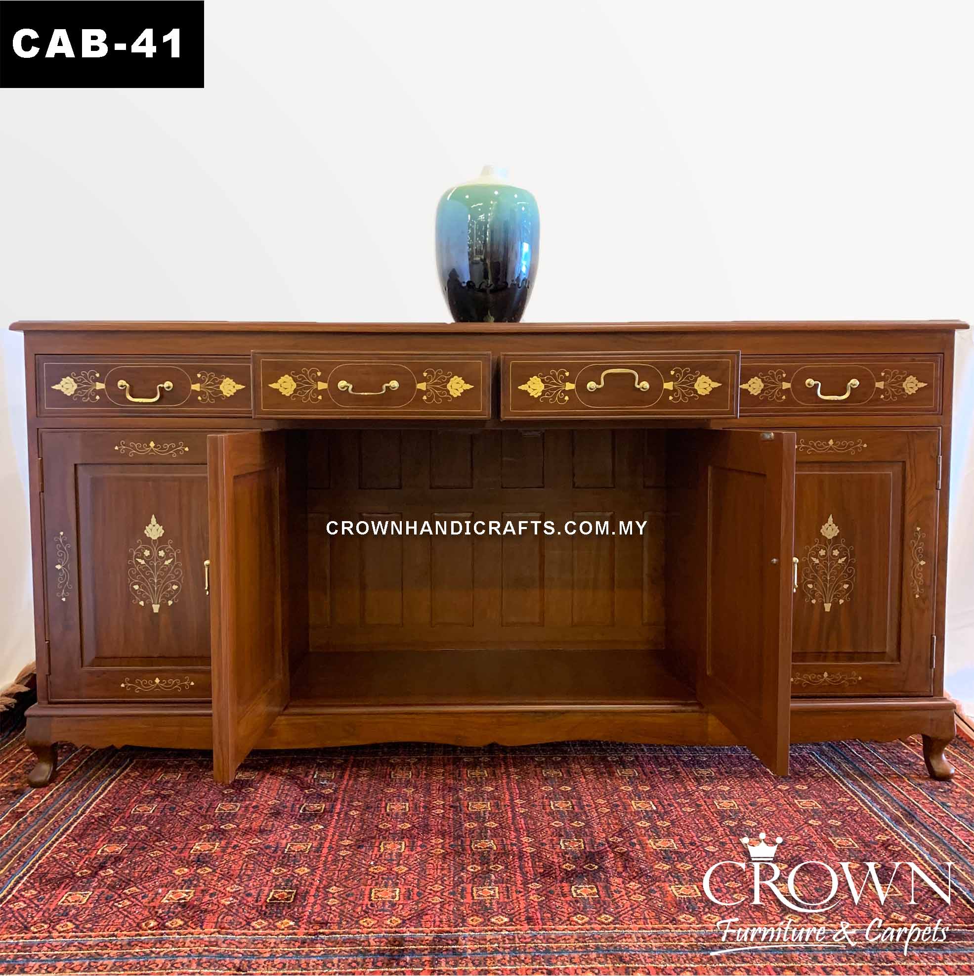 Elegant Sideboard Cabinet Brass In-laid by Artisan, Spacious and Essential Living Room and Dining Room Furniture in Malaysia | CAB-41 (L72 W18 H36 Inches)