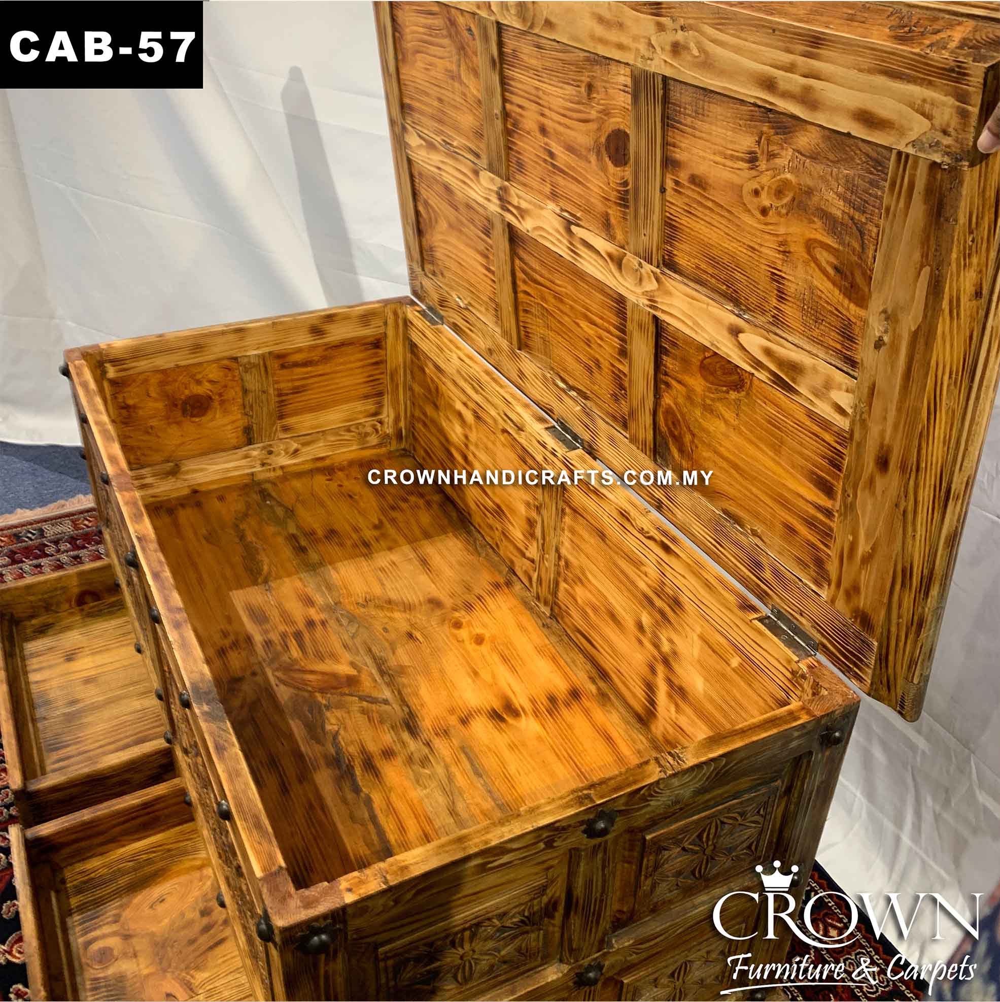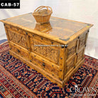 Treasure Trunk Chest Antique Style Pitara Box Hand Carved Two tone Accent with Metal Ornaments | CAB-57 (L50 W27 H27 Inches)