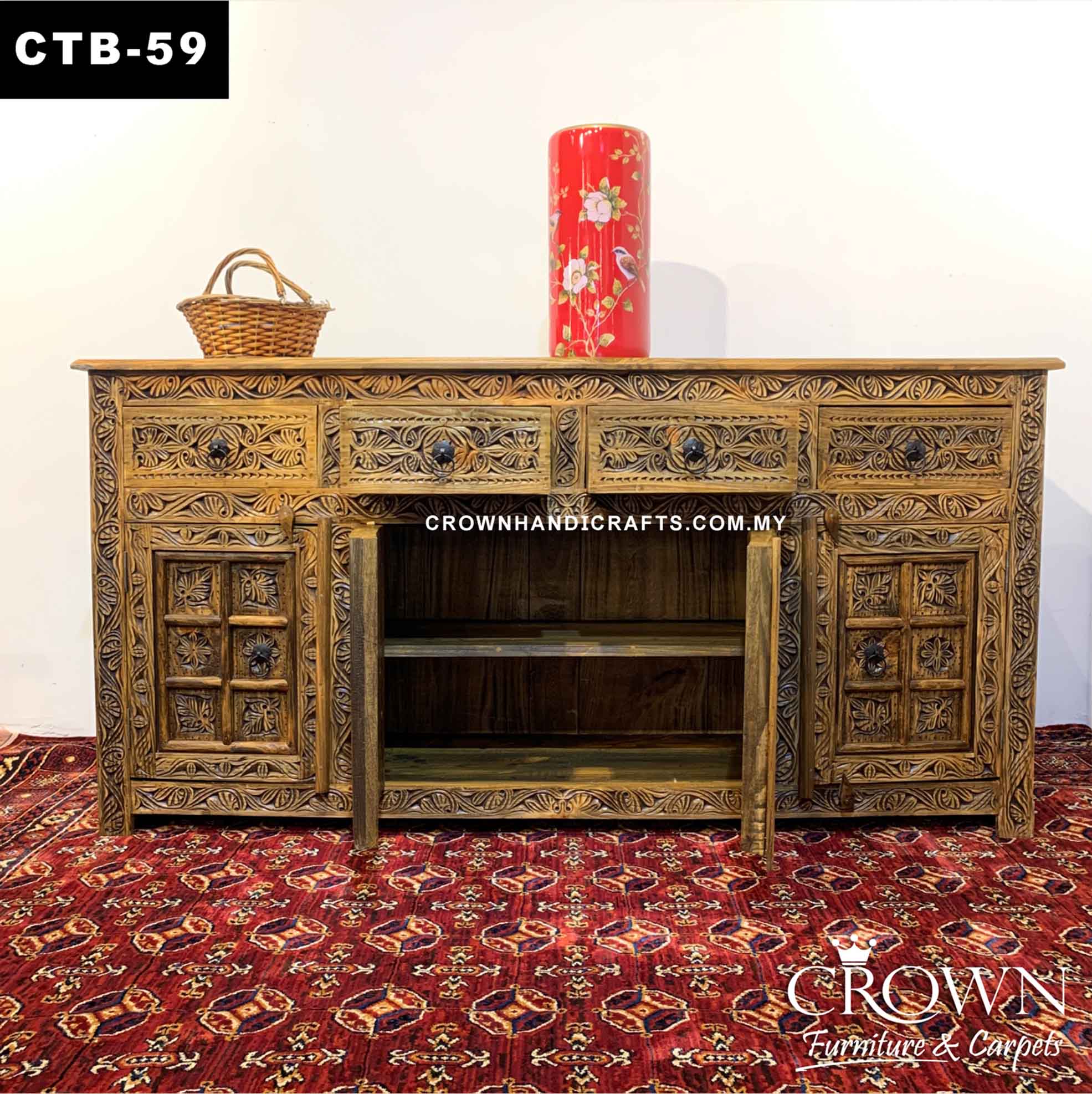 Antique Sideboard Cabinet Indian Haveli Door Design, Spacious and Essential Living Room and Dining Room Furniture Shop in Malaysia | CAB-59 (L72 W17.5 H27 Inches)