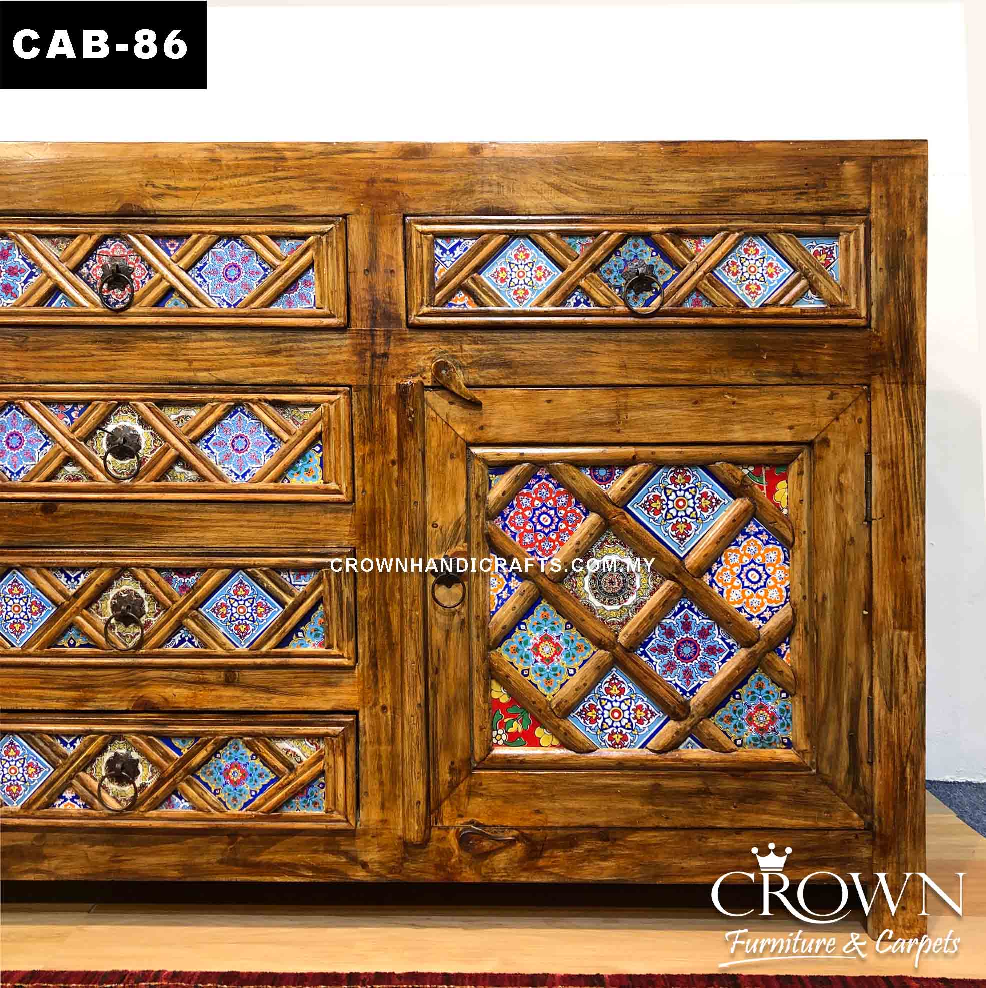 Antique Cabinet Boho Accent Diamond Shape Hand-Painted by Artisans | Solid Wood Furniture Store in Malaysia | CAB-86 (L72 W18 H36 Inches)