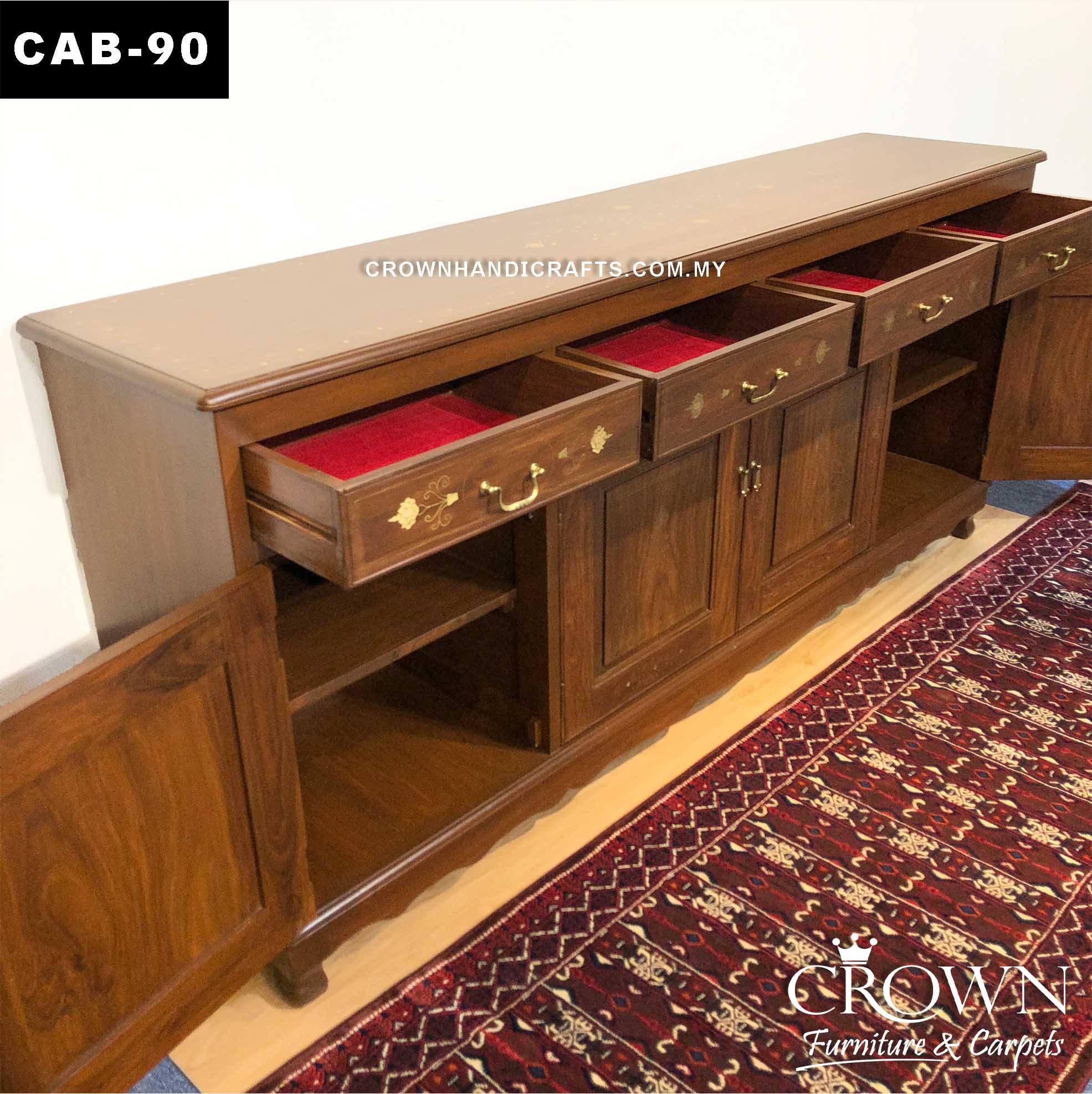 Solid Wood Sideboard Cabinet Hand Carved and Brass In-laid by Artisan, Esssential Furniture for Living Room Teak Wood Furniture in Malaysia | CAB-90 (L84 W18 H37 Inches)