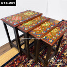 4-Piece Rajasthani Hand-Painted Nesting Tables - Vibrant Floral Art, Multi-Functional Living Room Side Tables | CTB-209 (L20.5 W14 H21 Inches)
