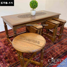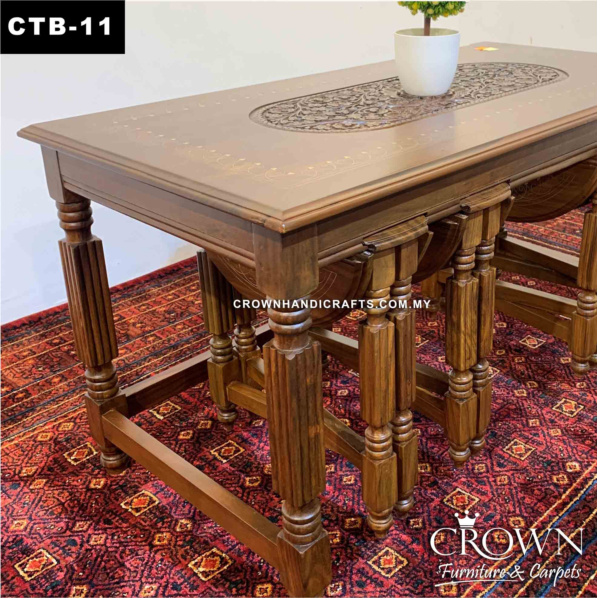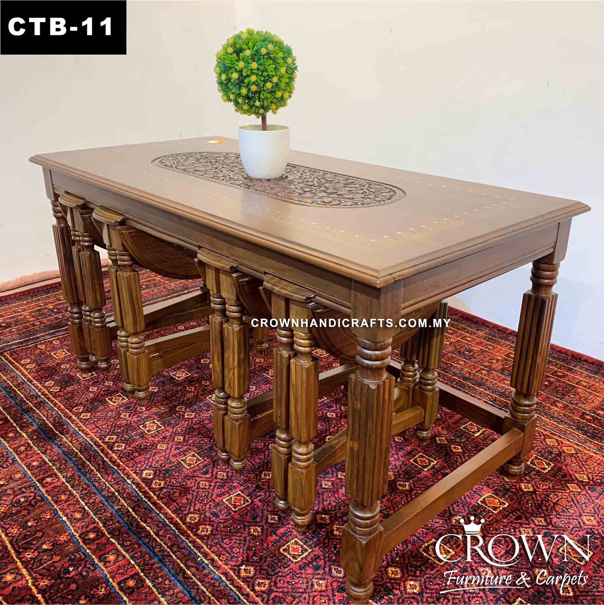 Amazing 4-stool Slot in out Style Coffee Table, Perfect for Multiple usage in Living Room, Solid Wood Table, Accent with Hand Carving and Brass inlay | CTB-11 (L40 W20 H21 Inches)