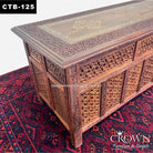 Kashmiri Indian Coffee Table with Artistic Brass inlay and Hand Carving, Solid Wood Coffee Table | CTB-125 (L42 W18 H18 Inches)