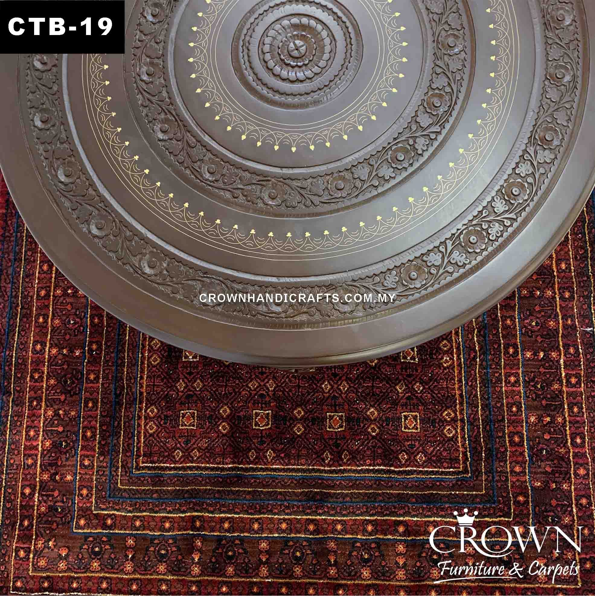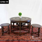 Round Japanese Style 6-stool Slot in out Coffee Table, Perfect for Multiple usage in Living Room, Solid Wood Table, Accent with Hand Carving and Brass inlay | CTB-19 (D37 H24 Inches)