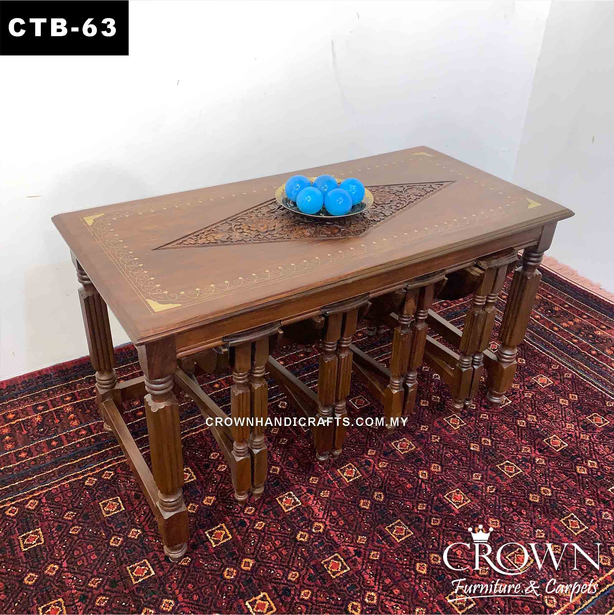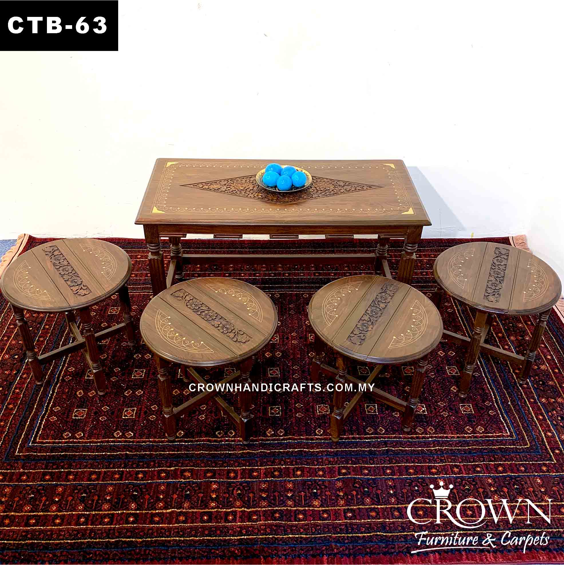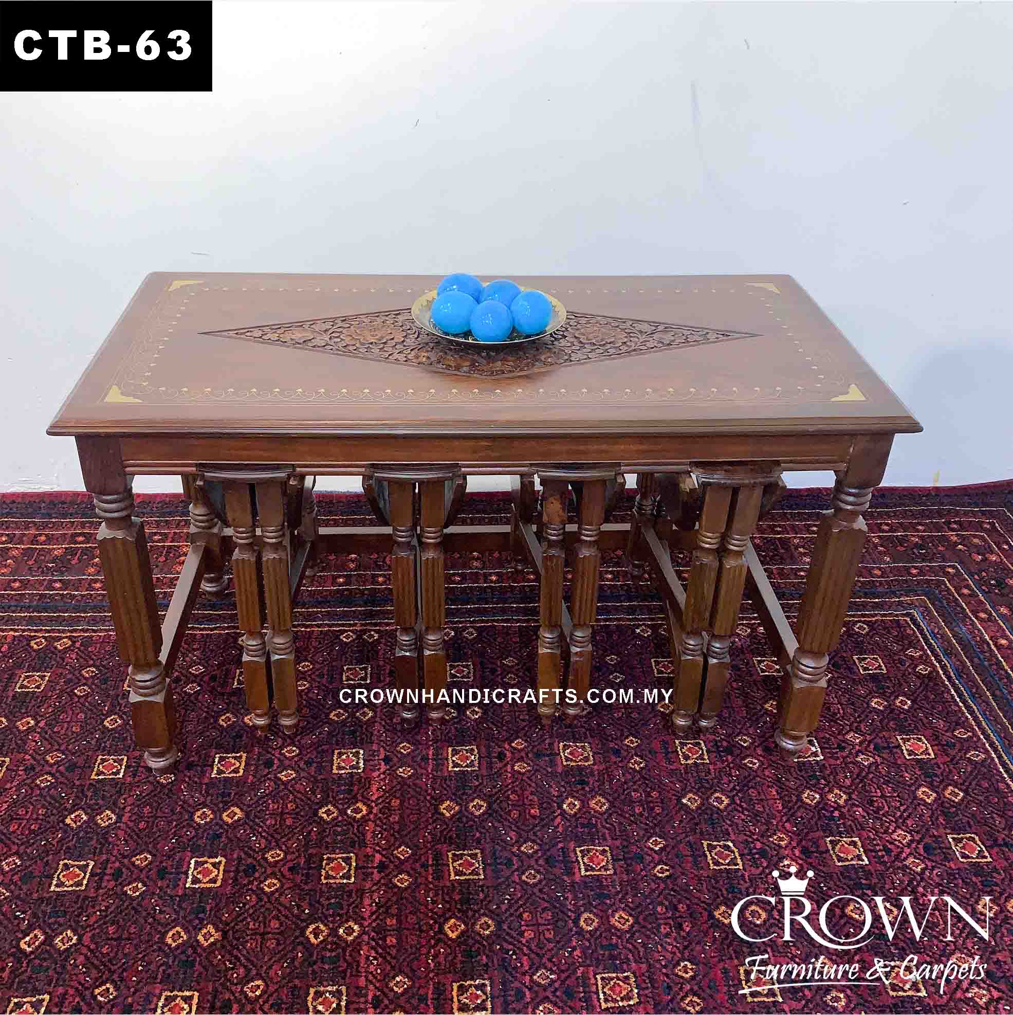 Amazing 4-stool Slot in out Style Coffee Table, Perfect for Multiple usage in Living Room, Solid Wood Table, Accent with Hand Carving and Brass inlay | CTB-63 (L36 W18 H21 Inches)