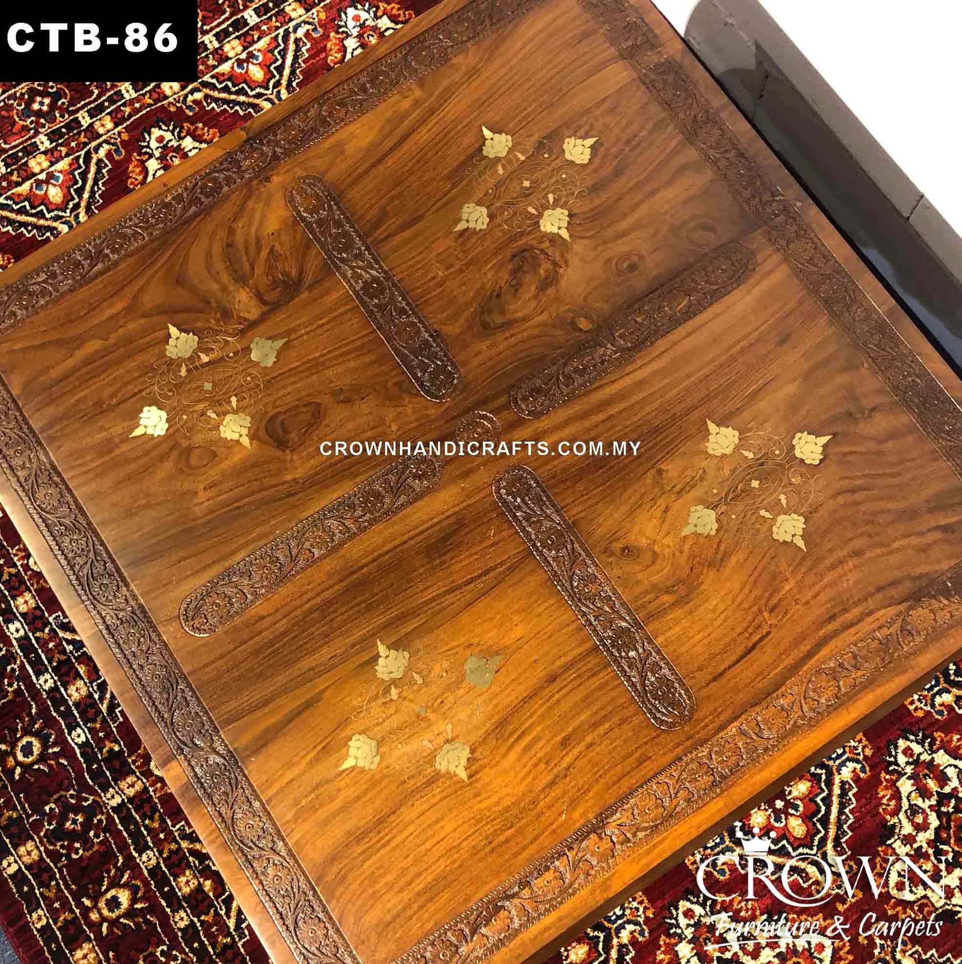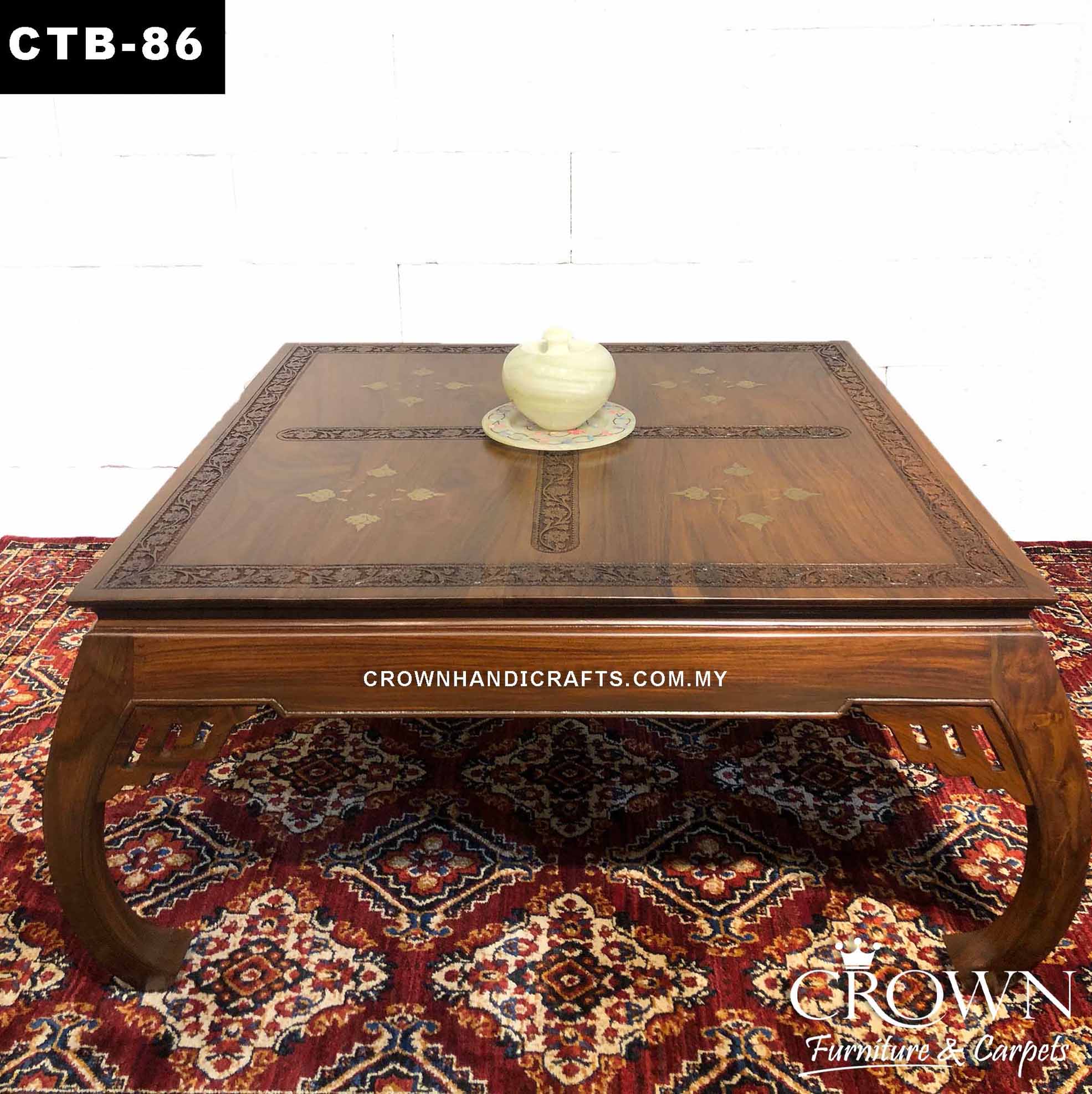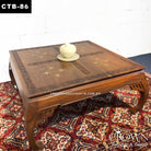 Monk Style Square Coffee Table, Featured with Hand Carving and Brass inlay, Solid Wood Table | CTB-86 (L36 W36 H19 Inches)
