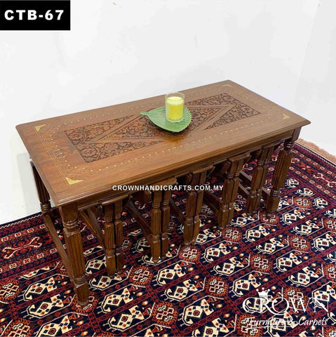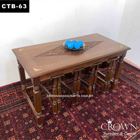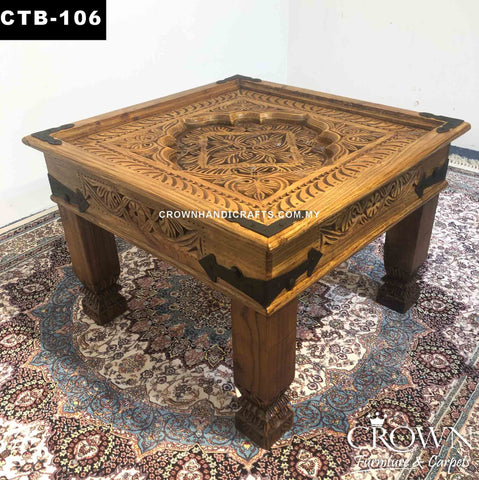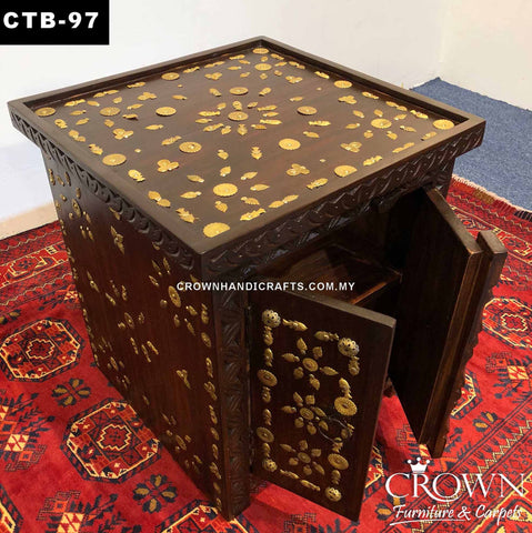 This square coffee table combines functionality and elegance, featuring a double top with a drawer that opens from both sides for easy storage. Its eclectic style is enhanced by intricate hand carving and brass inlay, adding a touch of luxury and artistry. Crafted from solid wood, this table brings both beauty and durability to your living room, making it a versatile and eye-catching centerpiece. The spacious surface and convenient storage drawer make it perfect for everyday use, while its unique design ensures it complements a variety of interiors.