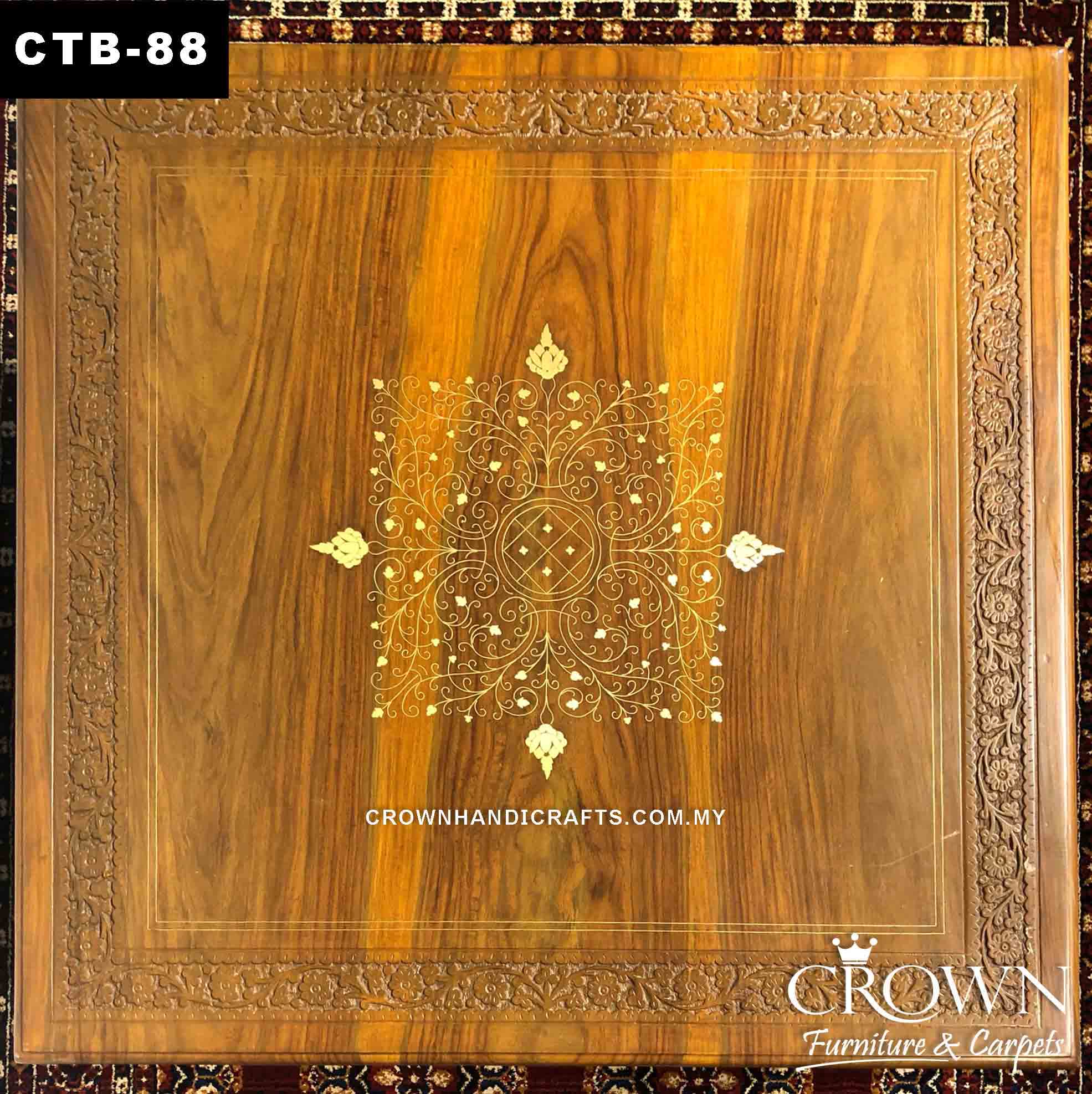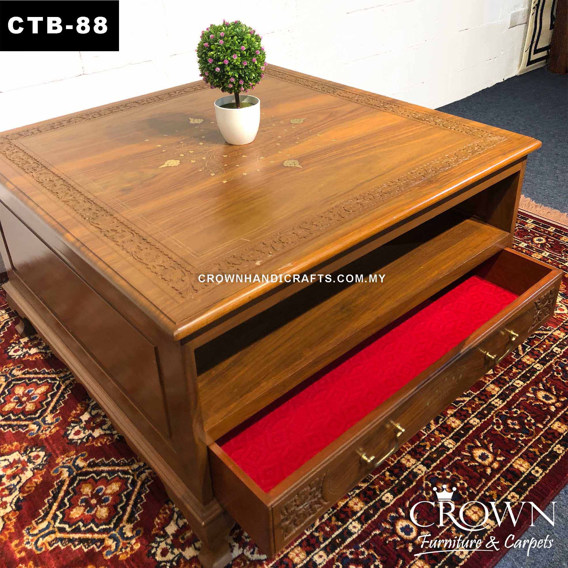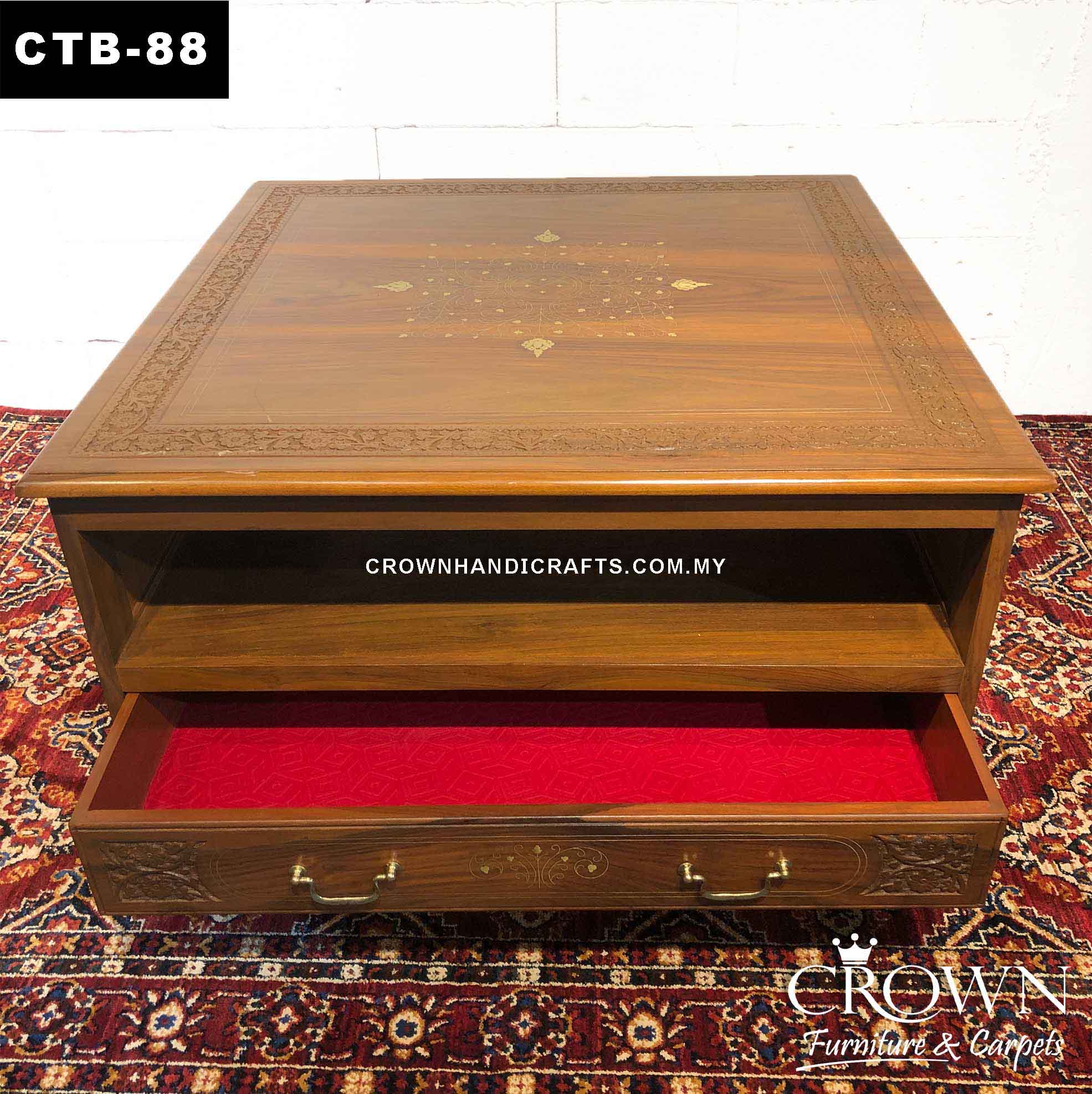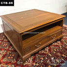 Square Coffee Table Double Top along with Drawer openable both sides, Ecletic Style Hand Carving and Brass Inlay, Solid Wood Coffee Table | CTB-88 (L36 W36 H22 Inches)
