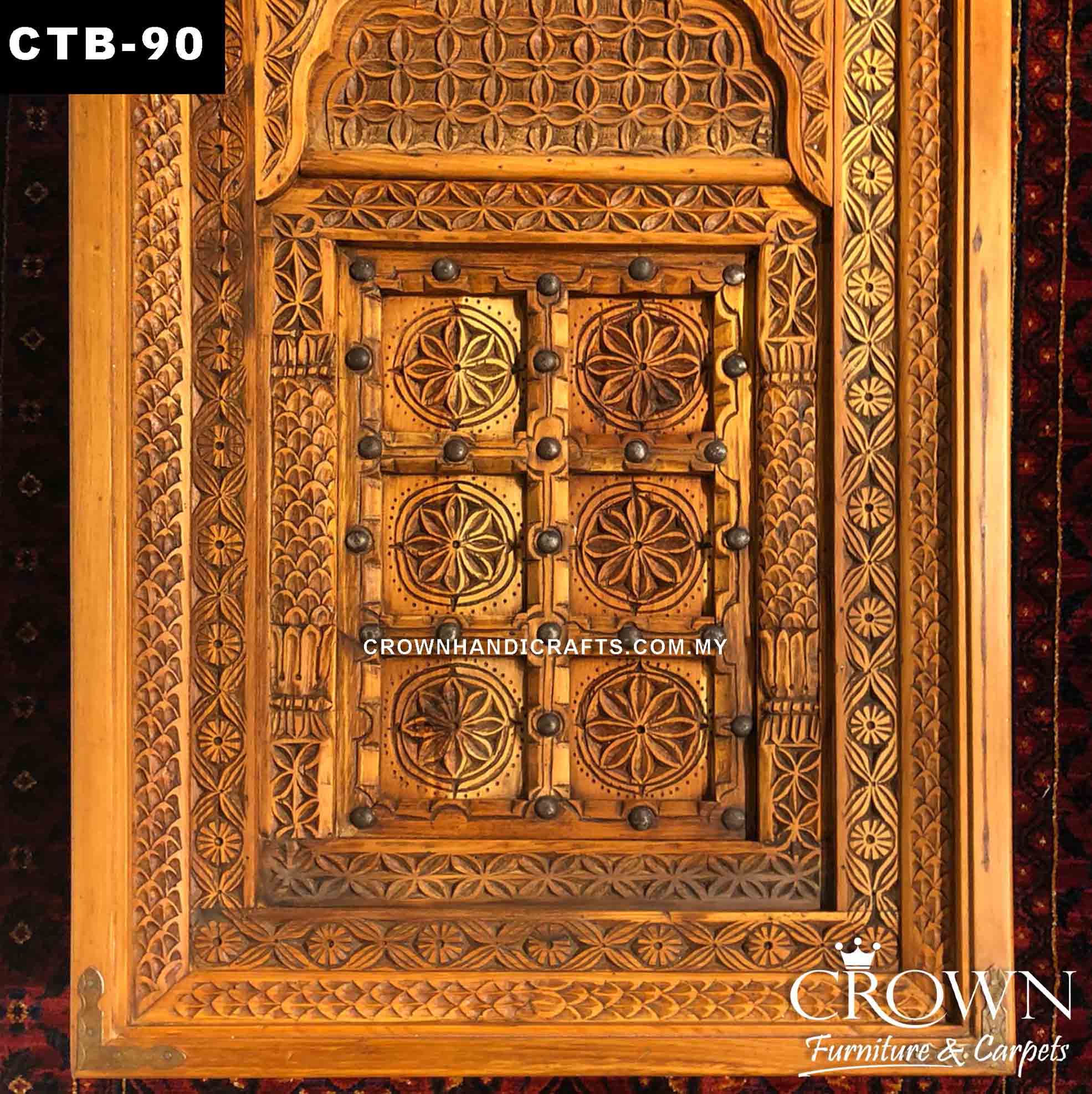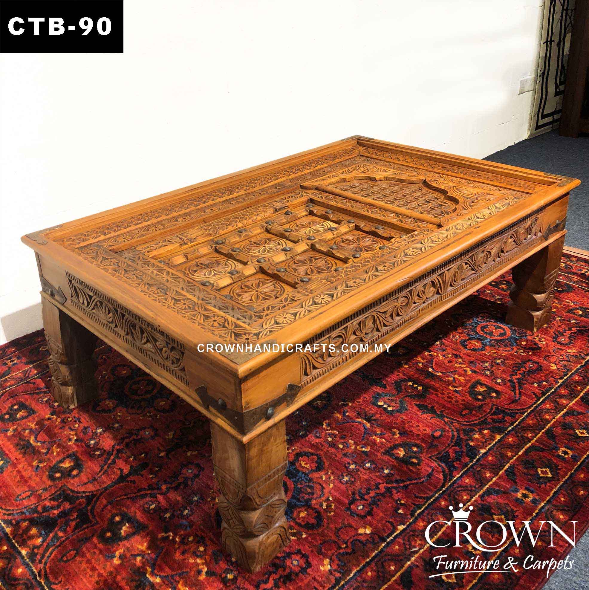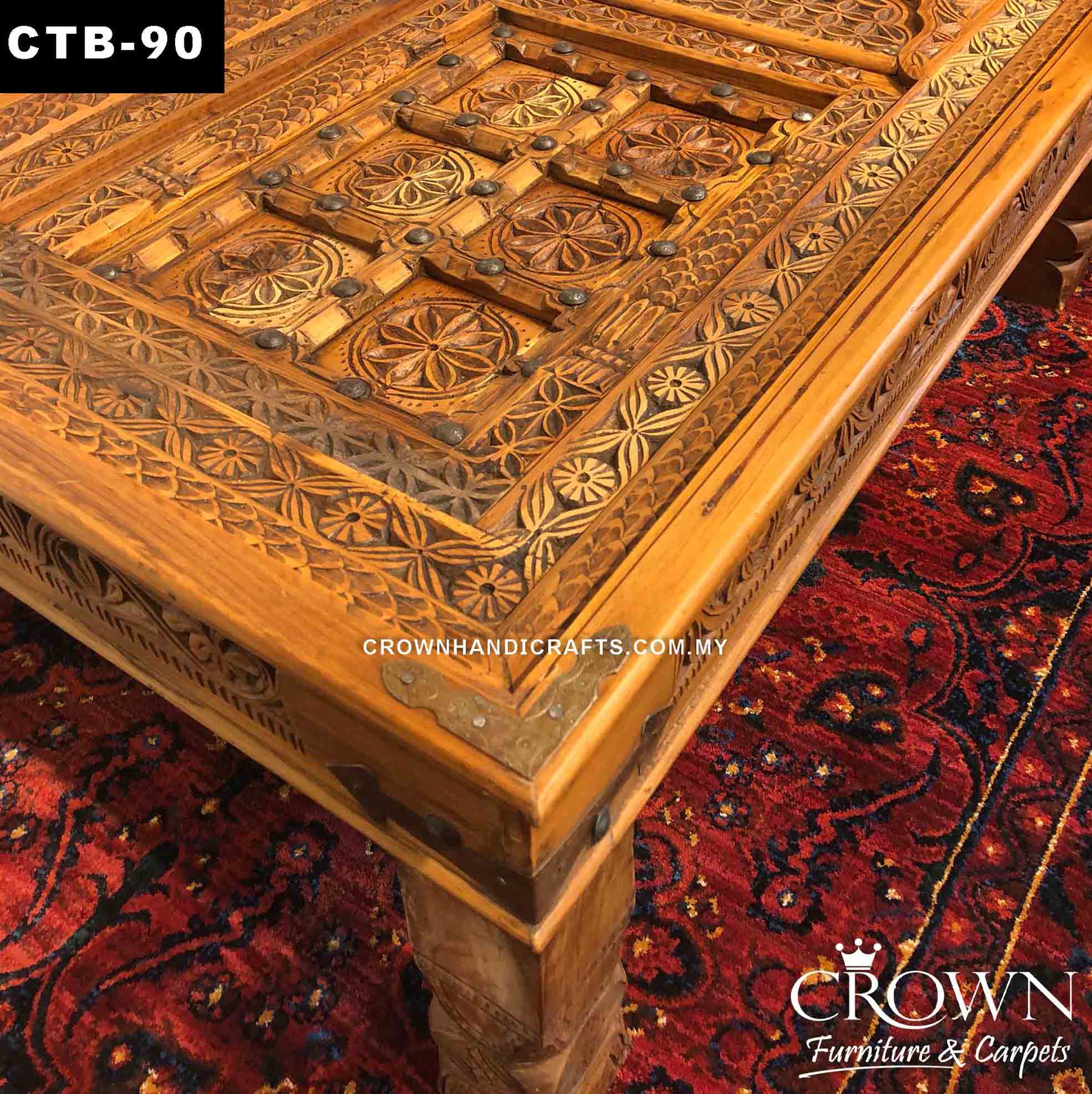 Coffee Table Solid Wood, Moghul Palace Door Antique Style, Hand Carved along with Accent of Metal Ornaments | CTB-90 (L48 W32 H18 Inches)