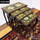 Hand-Painted Rajasthan Nesting Tables - Set of 4 Eclectic Indian Side Tables | Multi-Functional Space-Saving Design for Living Room Decor | CTB-208 (L20.5 W16 H21 Inches)