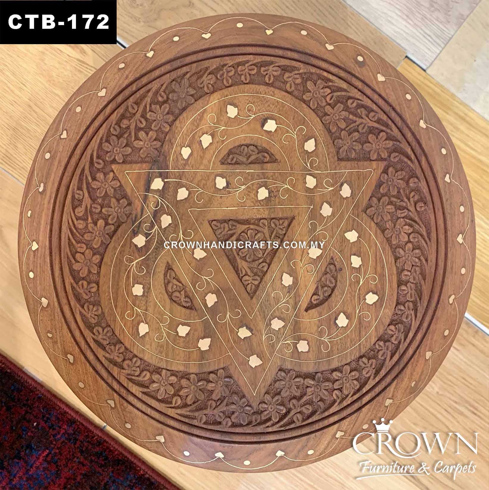 Solid Wood Stool Side Table Kashmiri Indian Craft-Amazing Hand Carving and Brass Inlay | CTB-172 (D12 H12.5 Inches)