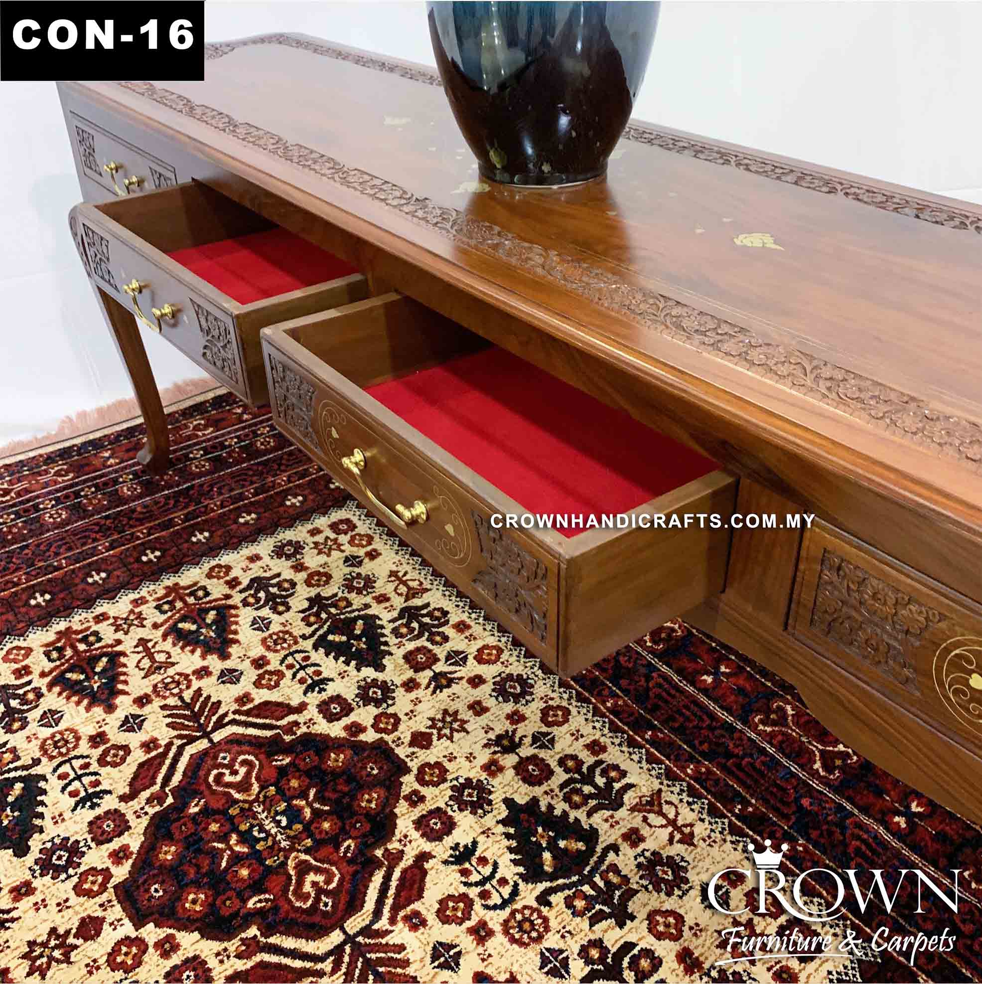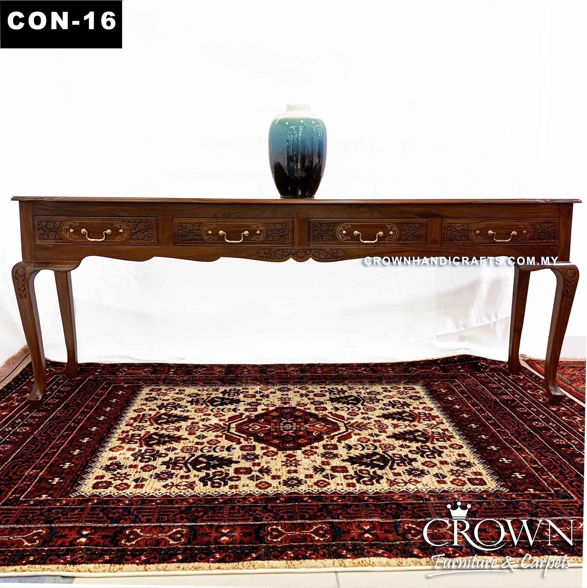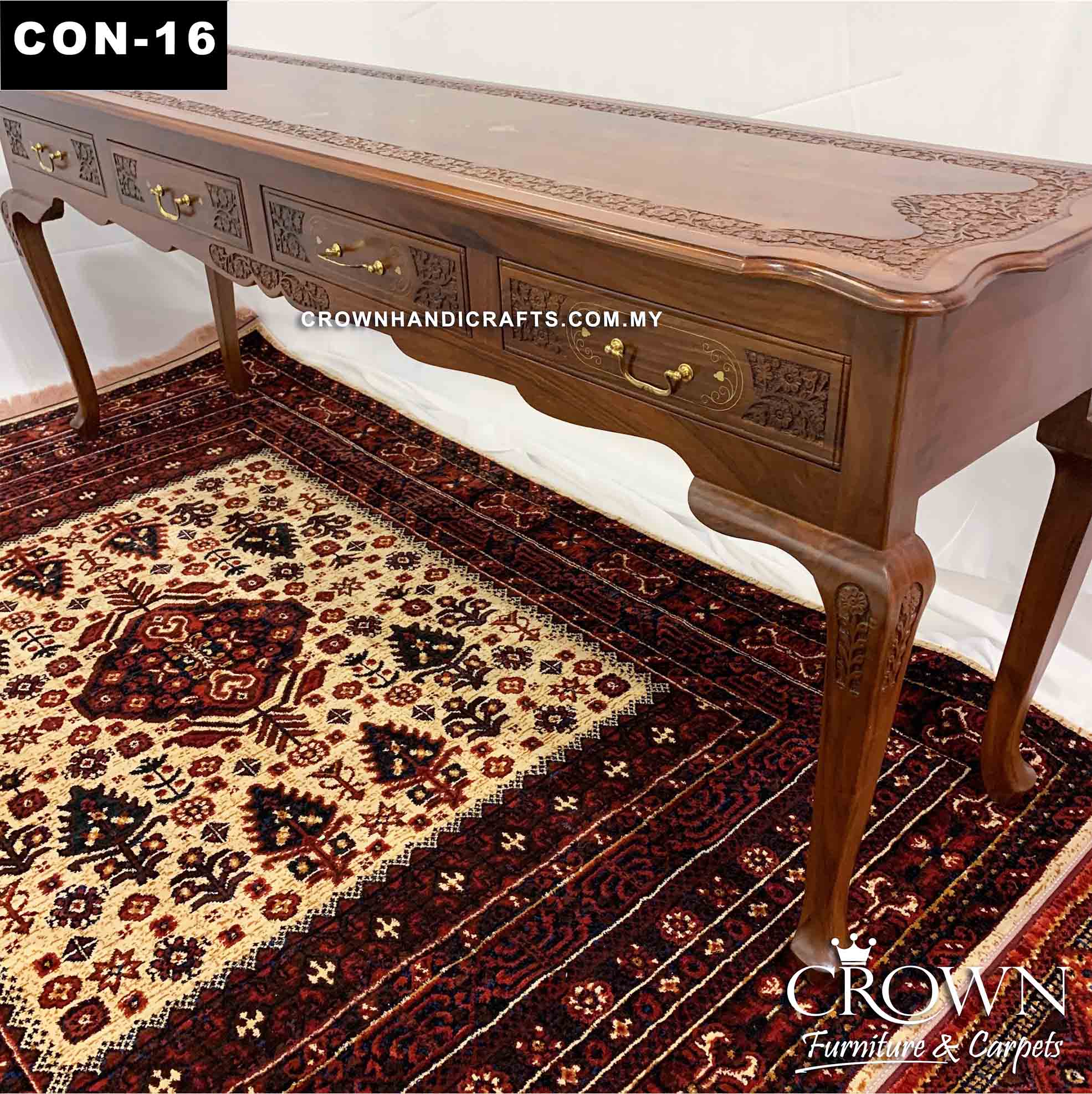 Victorian Style Long Console Table and Sofa Table, Featured with Hand Carving and Brass Inlay | Solid Wood Entrance Console Table in Malaysia | CON-16 (L78 W18 H30 Inches)