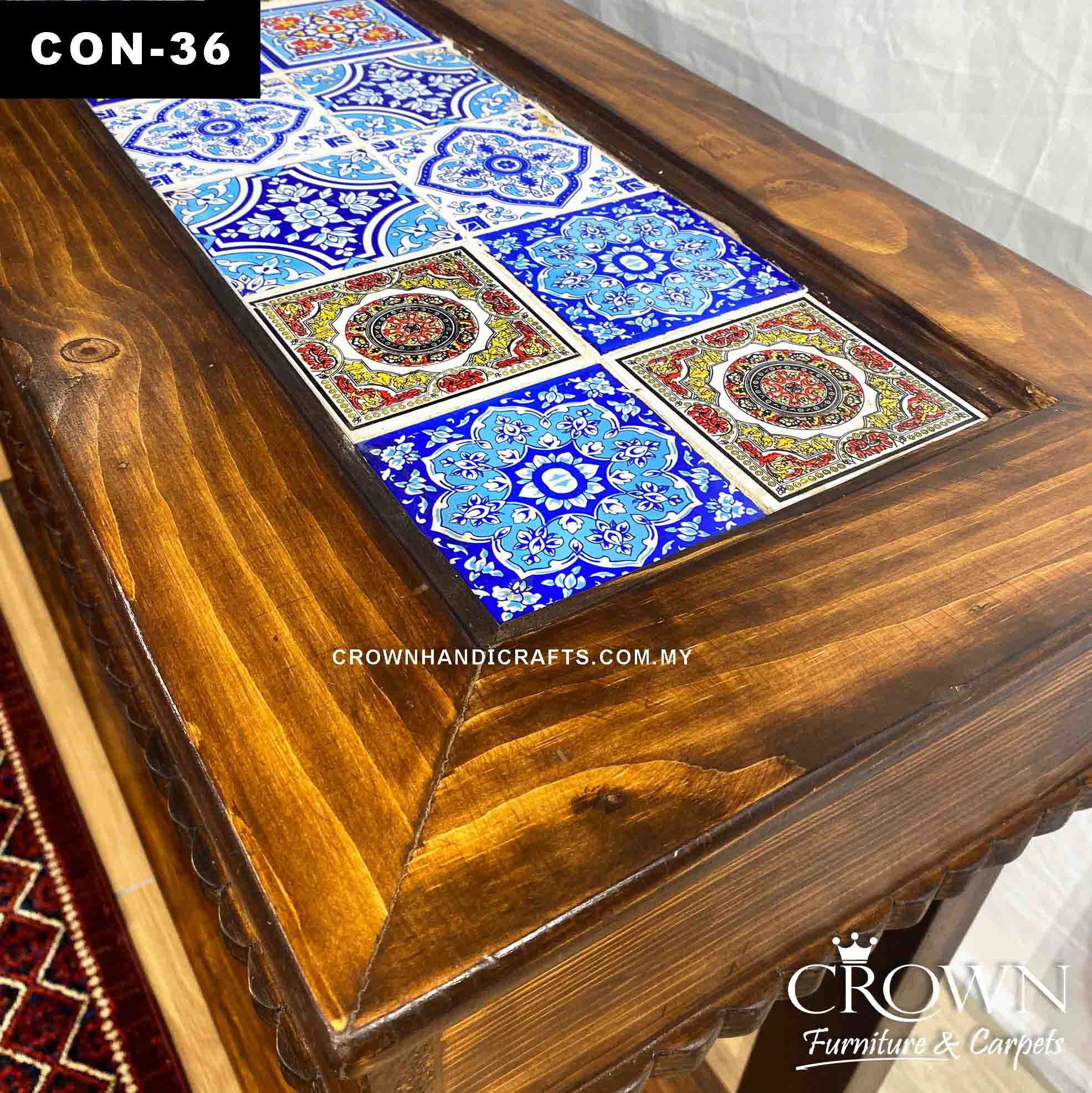 A Perfect Balance of Simplicity yet Elegant | Expression of Bohemian Art over 22 tiles on Top of the Table | We speak Aesthetic! Furniture Fusion for your Living Room Decor | CON-36 (L51 W15 H36 Inches)