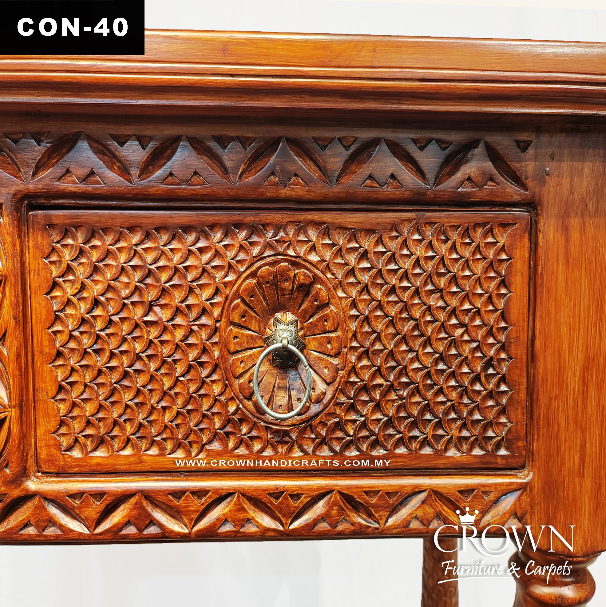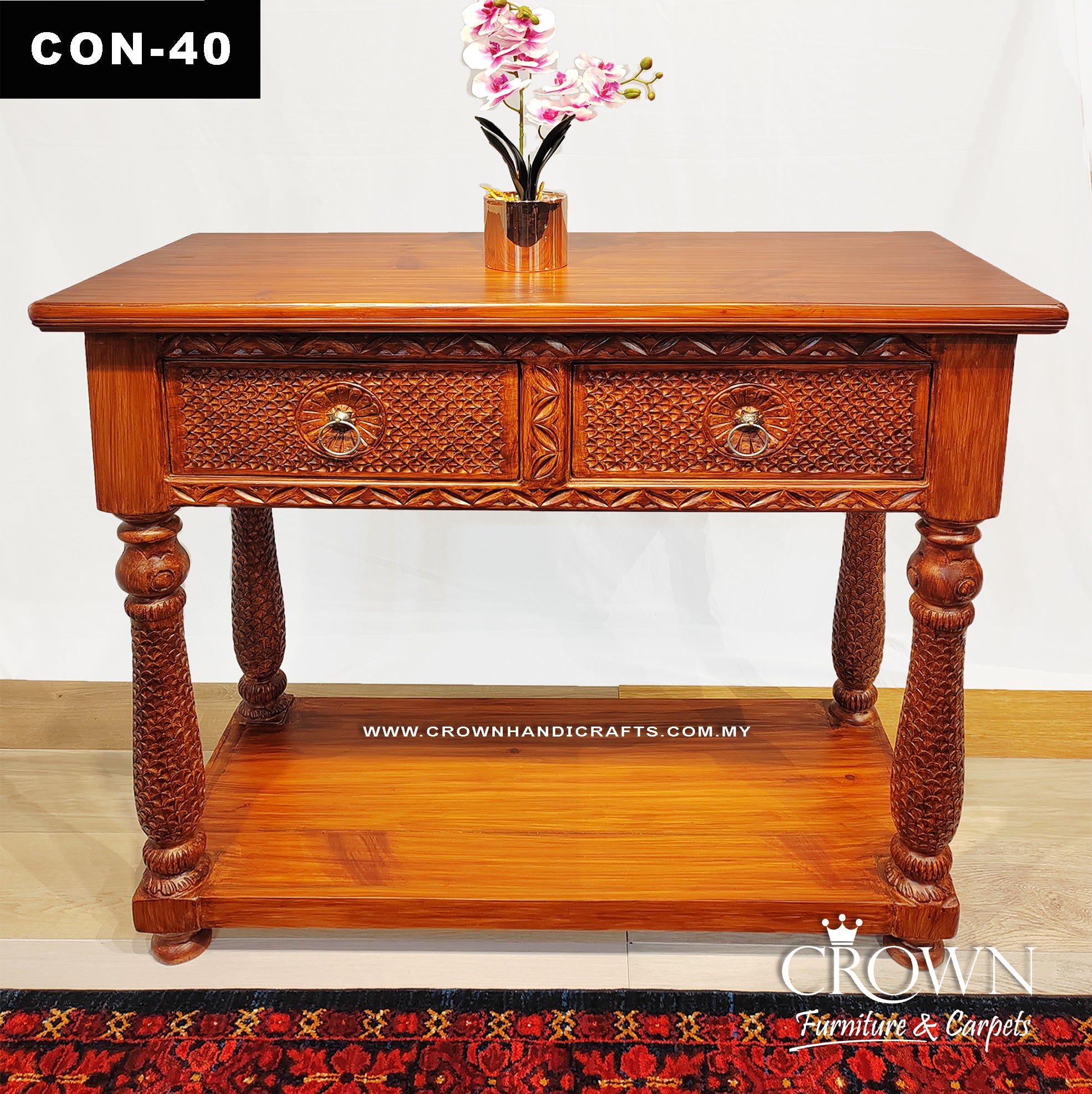 4 Pillars of Date Tree Console Table in Natural Color along with two drawers | Impressive look for your Entrance and Living Room | CON-40 (L42 W18 H38 Inches)