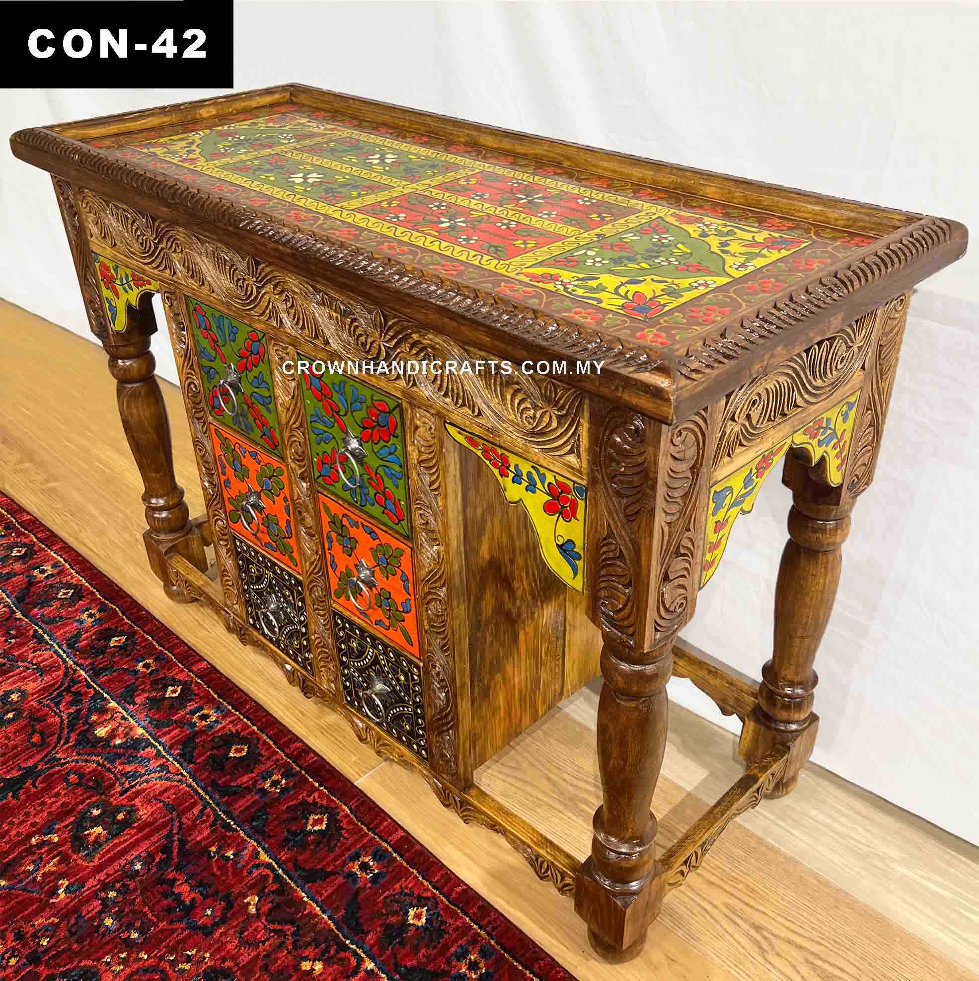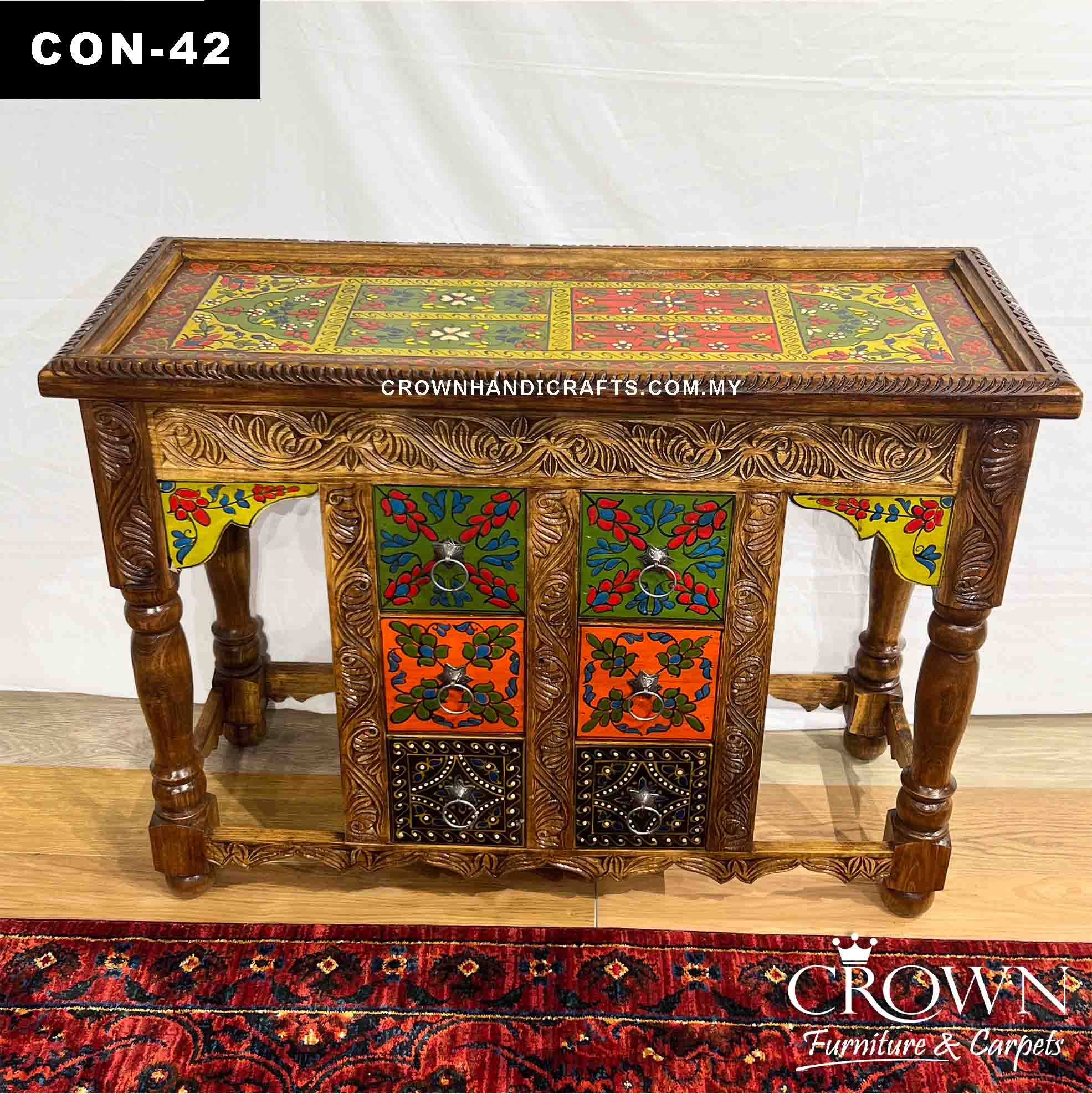 Vibrant Hues of Timeless Art Paired on Solid Wood Console Table for your Entrance and Living Room | Decor with Handcrafted Elegance | CON-42 (L42 W18 H30.5 Inches)