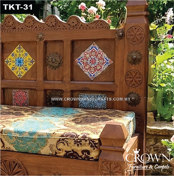 Bring Life to Your Living Room with a Bohemian Hand-Painted 3-Seater Couch and Vintage Ornamental Charm | TKT-31 (L71 W26.5 H43 Inches)