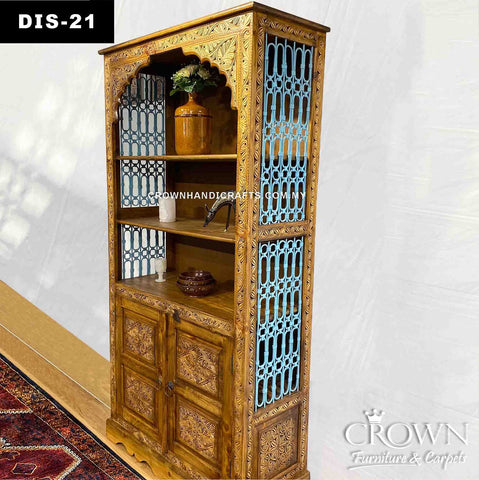 Display Cabinet to Showcase the Aesthetic Grace of your Living Room | Accent with Hand Carving along with Hand Painting for artistic enchantment | DIS-18 (L48 W17.7 H59.5 Inches)