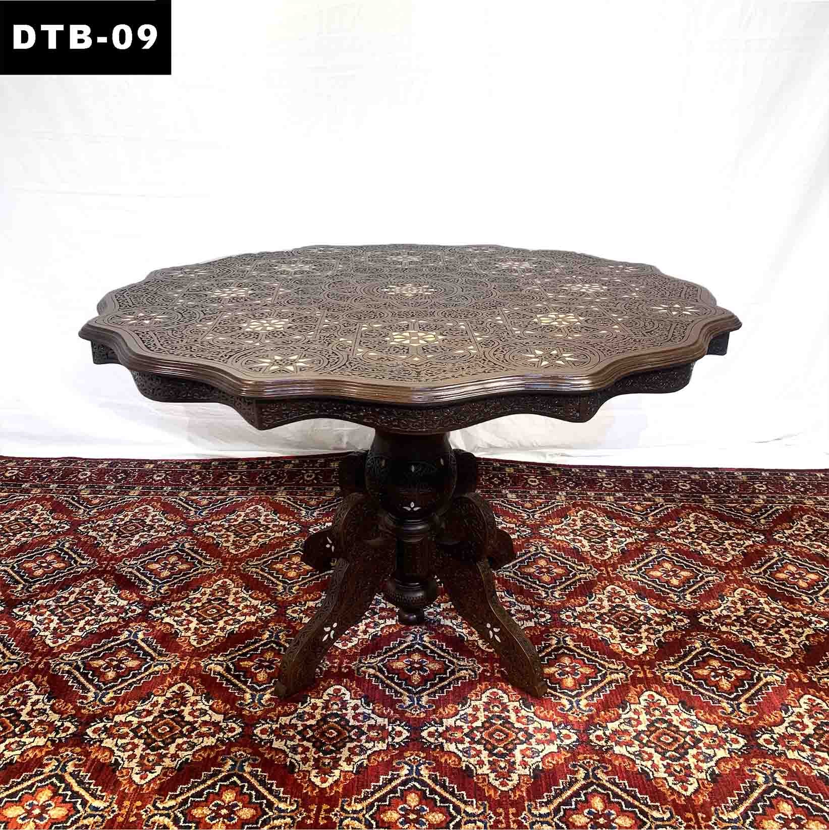 Round Dining Table 4-seater infused with Artistic Hand Carving and White Inlay boldly expressing the Elegant Touch | We speak beyond Aesthetics | DTB-09 (L47.5 W47.5 H30.5 Inches)