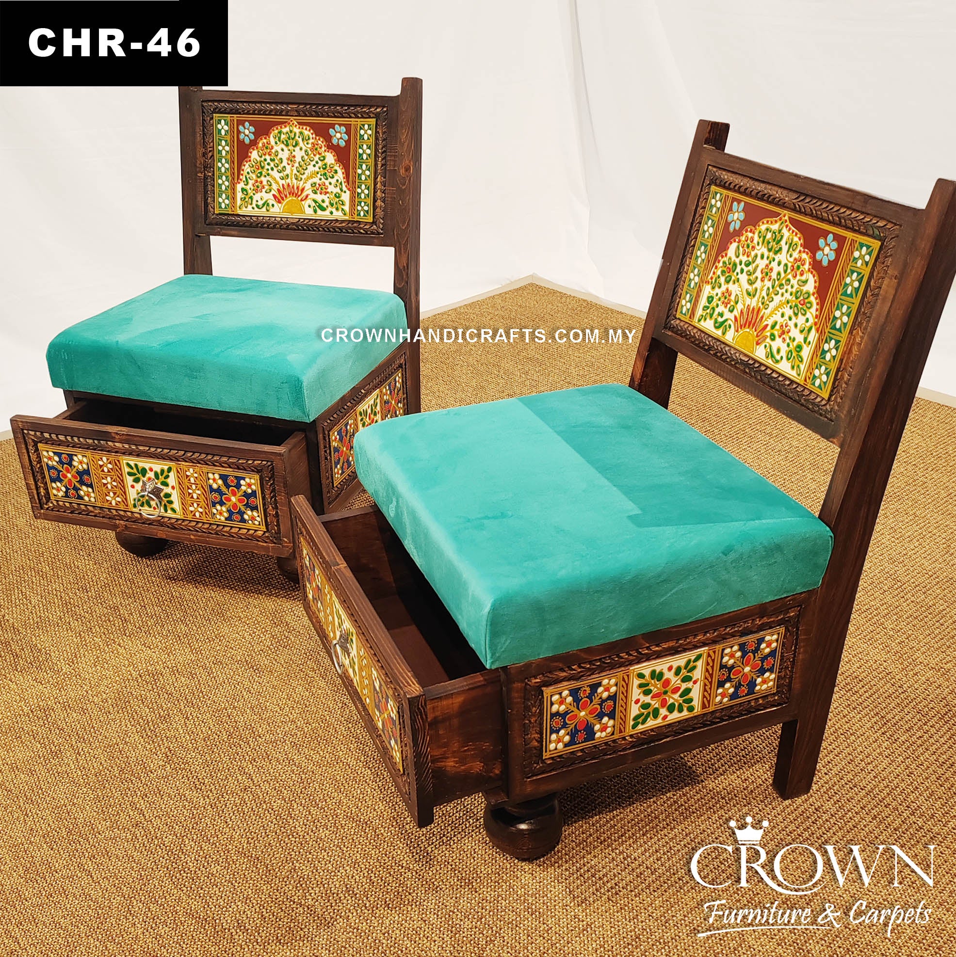Luxury Low Height Royal Chairs Set – Beautiful Rajasthani Hand Painting for Elegant Decor | CHR-46 (L18 W18.5 H29.5 Inches)