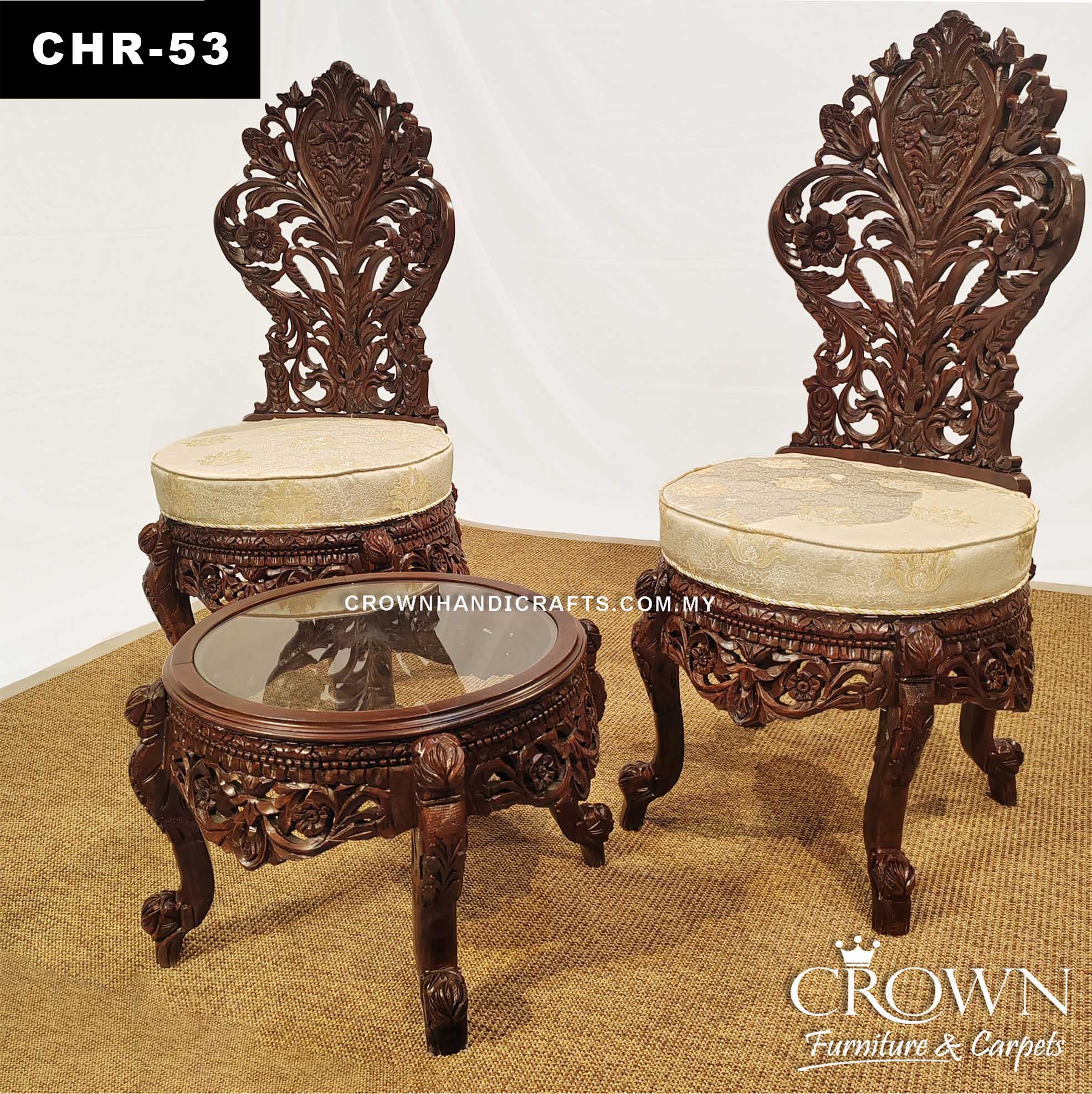 Premium Royal Peeri Chair Set with Table – Hand-Carved Wooden Masterpiece | CHR-53 (L22 W22 H45.5 Inches)