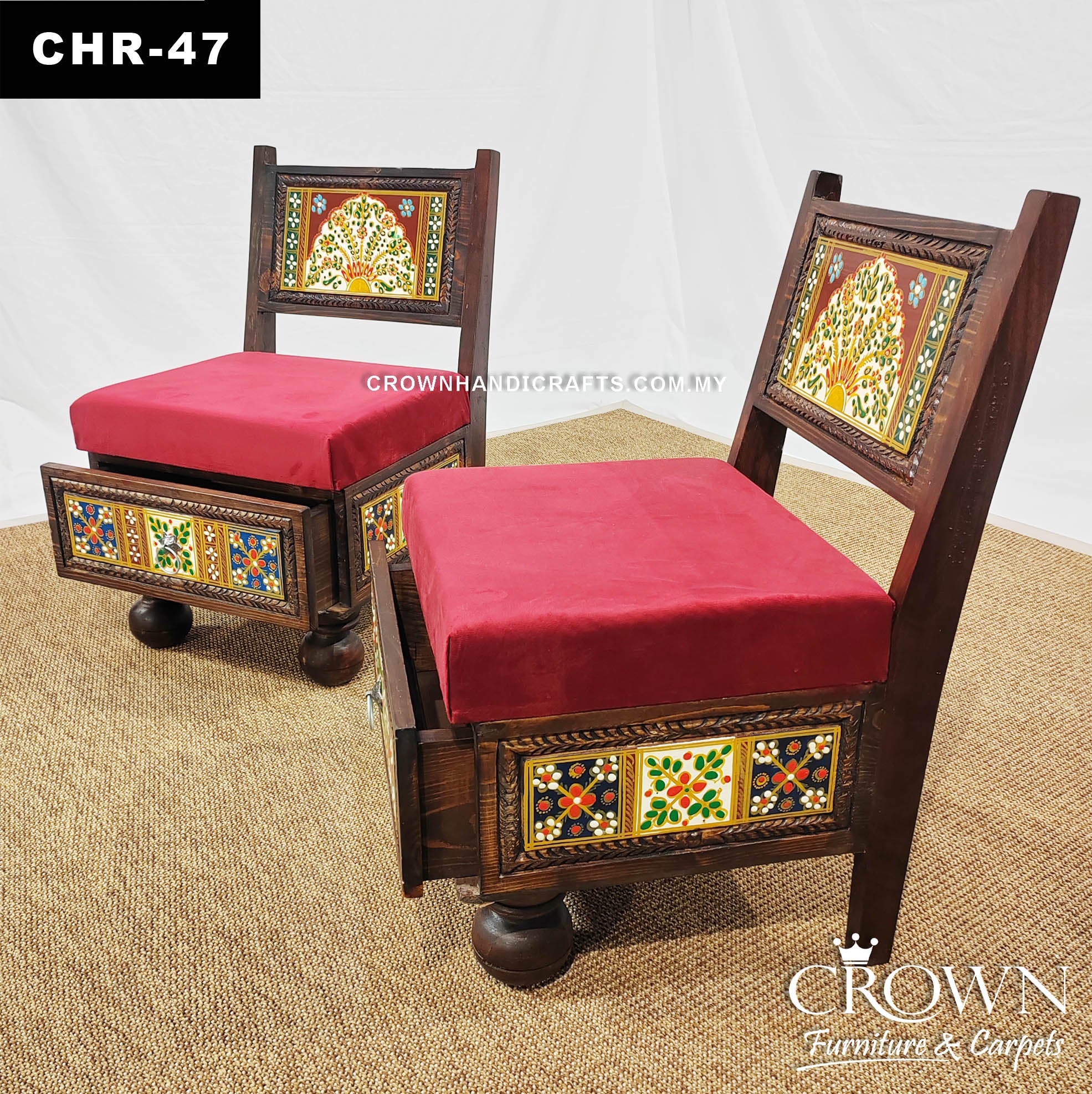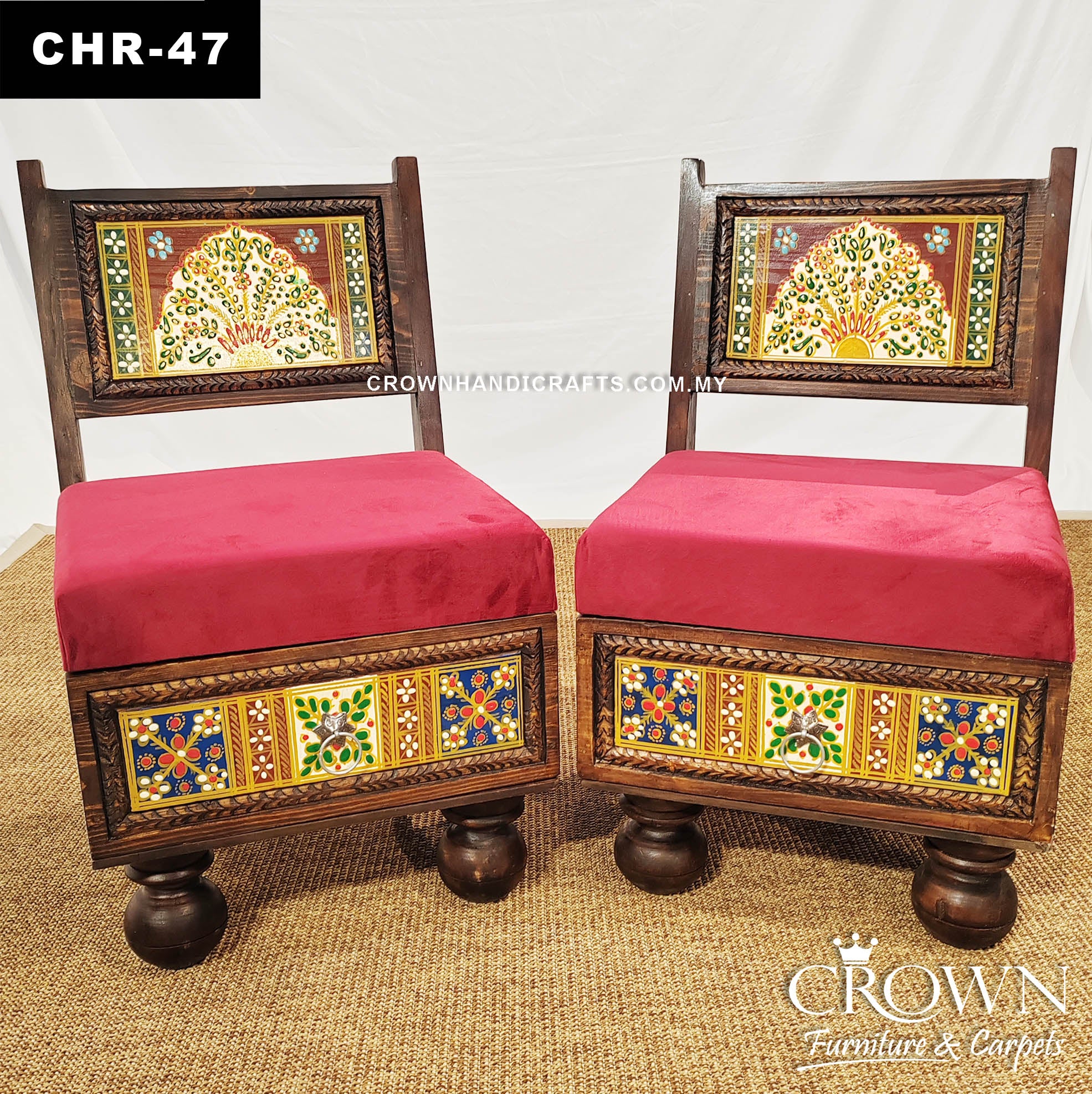Rajasthani Hand-Painted Low Height Royal Chair Set – Artistic Accent for Refined Living Spaces | CHR-47 (L18 W18.5 H29.5 Inches)