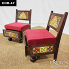 This pair of low height royal chairs is an exquisite addition to your living space, featuring Rajasthani hand painting art that enhances the overall aesthetic with vibrant and intricate designs. The royal style and artisanal craftsmanship make these chairs a standout piece, perfect for creating an elegant and regal atmosphere in your home. The solid wood frame provides durability, while the rich detailing ensures these chairs not only offer comfort but also act as a statement in your décor.