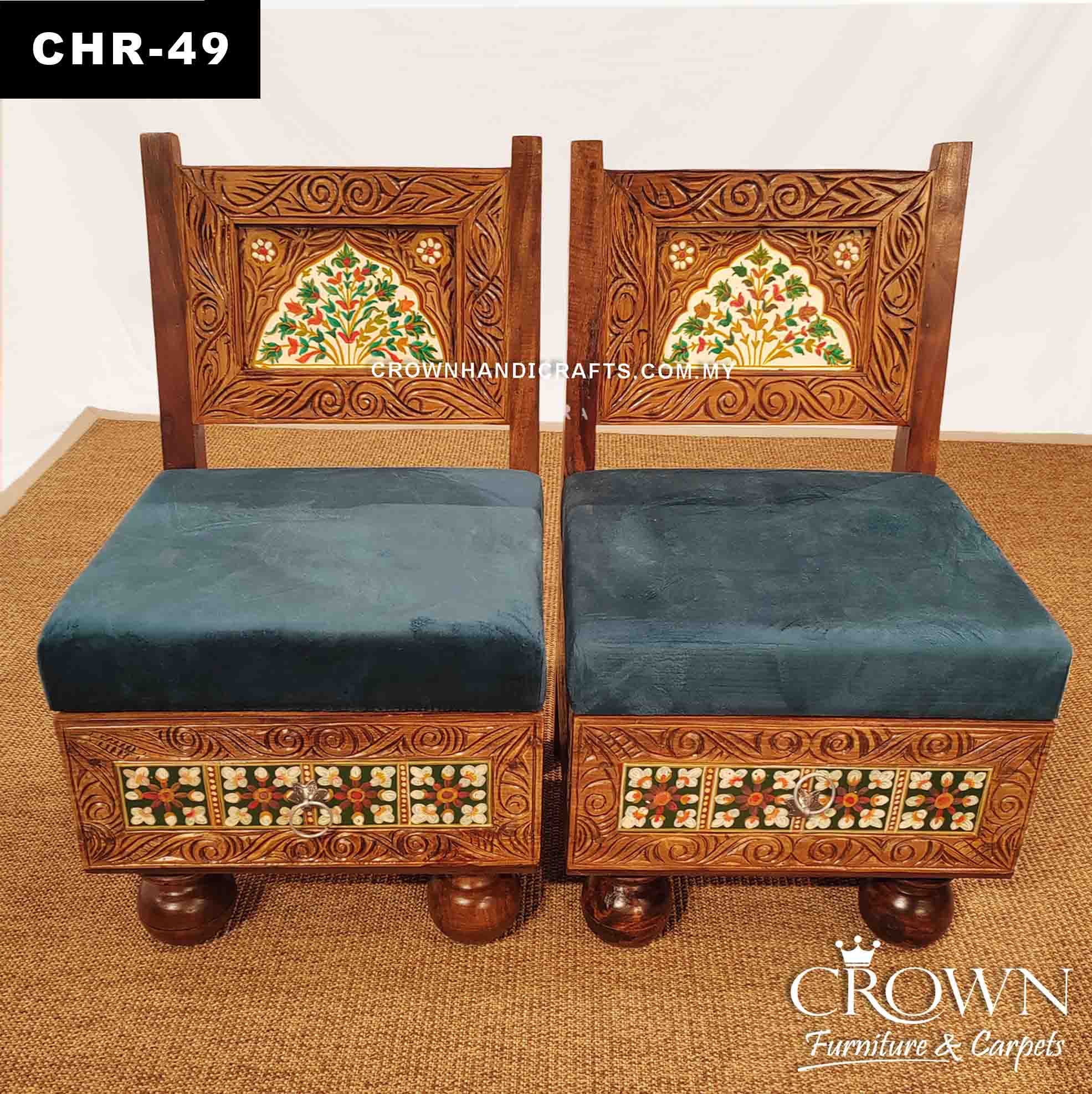 Royal Low Height Chair Set (2 Pieces) – Rajasthani Hand-Painted Design for a Sophisticated Interior | CHR-49 (L18 W18.5 H30 Inches)