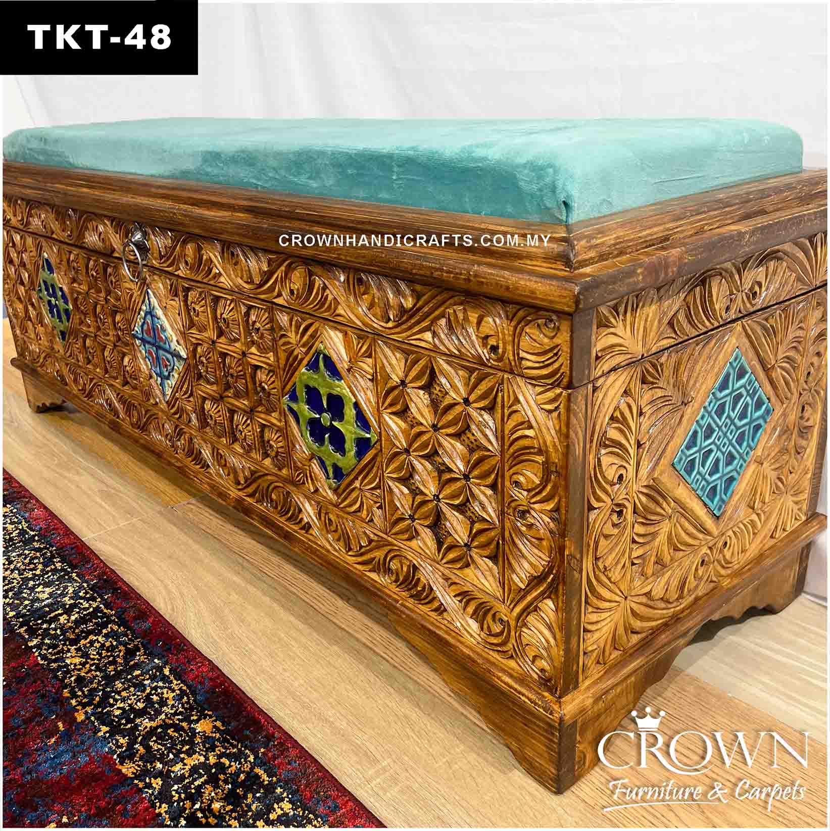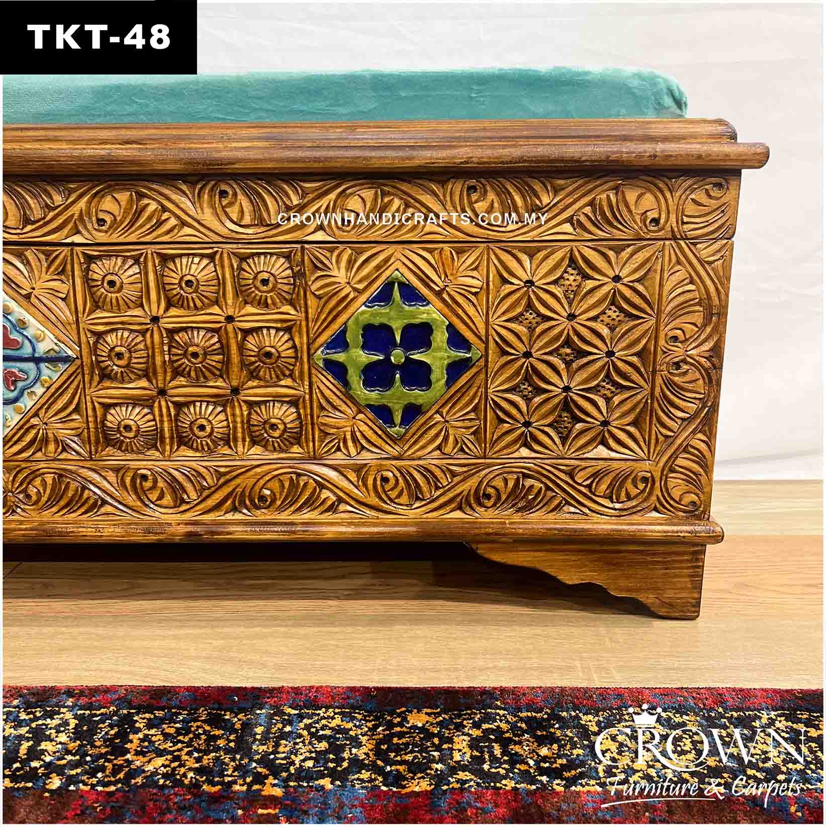 Ottoman Bench with Lift-up Storage Space, Tasteful Intricate Hand-Carving along with a Touch of Vibrant Hand-Painting to Enhance the Living Space | Aesthetic Wooden Furniture | TKT-48 (L48 W16 H17 Inches)