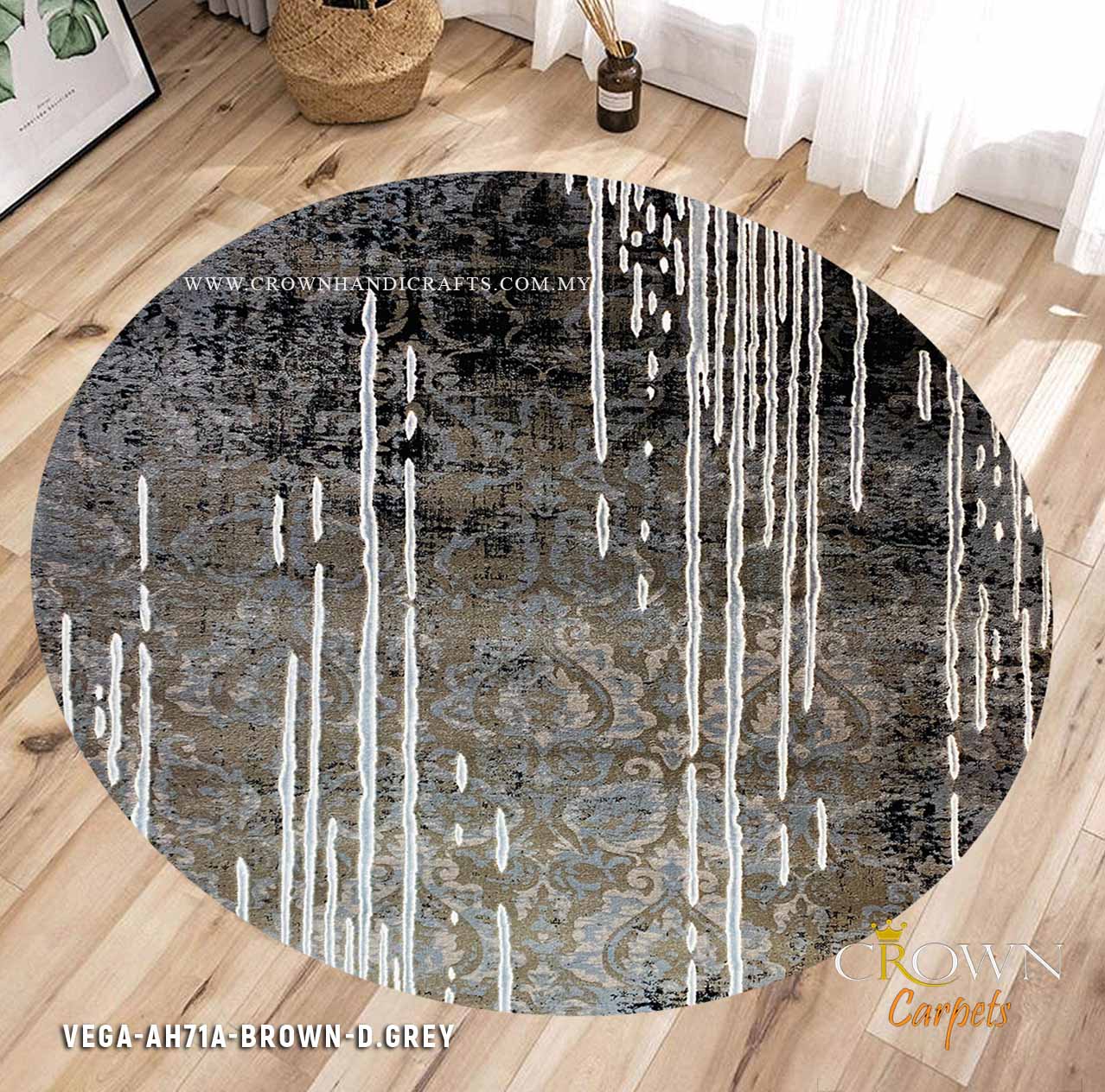 Abstract Modern Round Rugs for Living Room Bedroom Rugs | Vega AH71A Brown-D.Grey