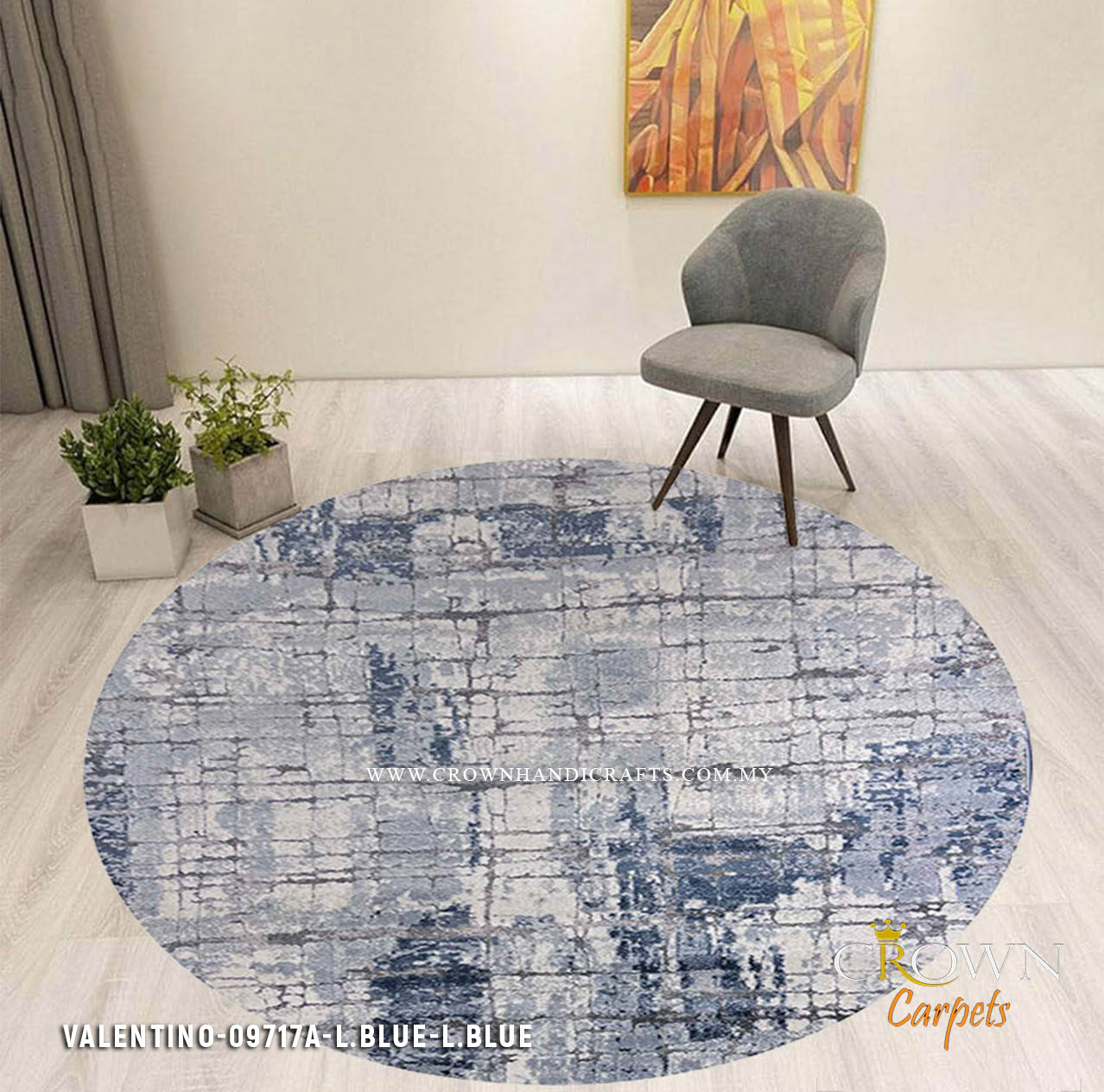 Elevate your living room, bedroom spaces with the Valentino Modern Round Carpet, meticulously crafted by Crown Furniture & Carpets. Our commitment as a leading carpet supplier in Malaysia is reflected in this contemporary masterpiece.