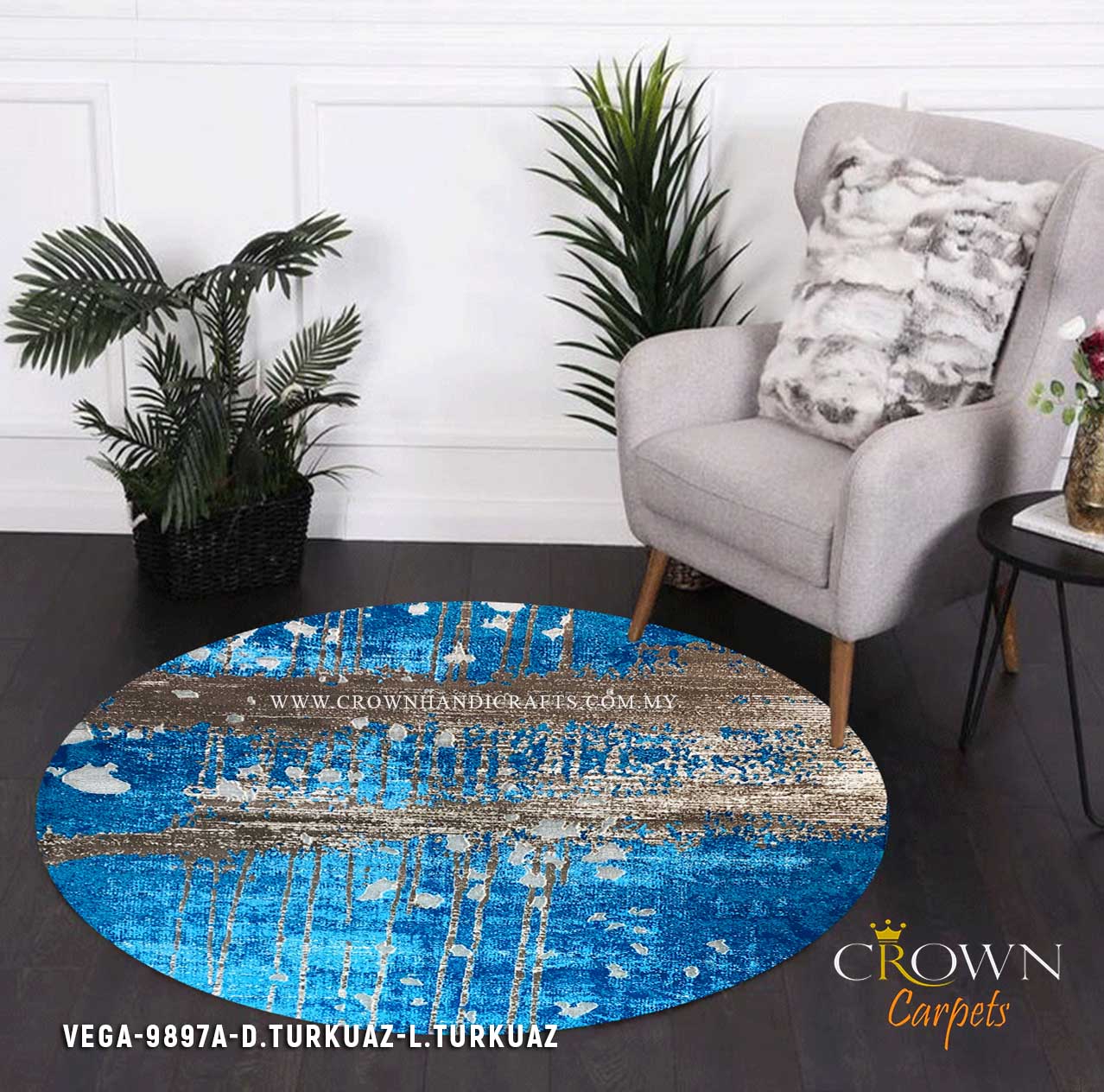 Distressed Rug Design Modern Round Carpet to match Modern Interior | Vega 9897A D.Turkuaz-L.Turkuaz