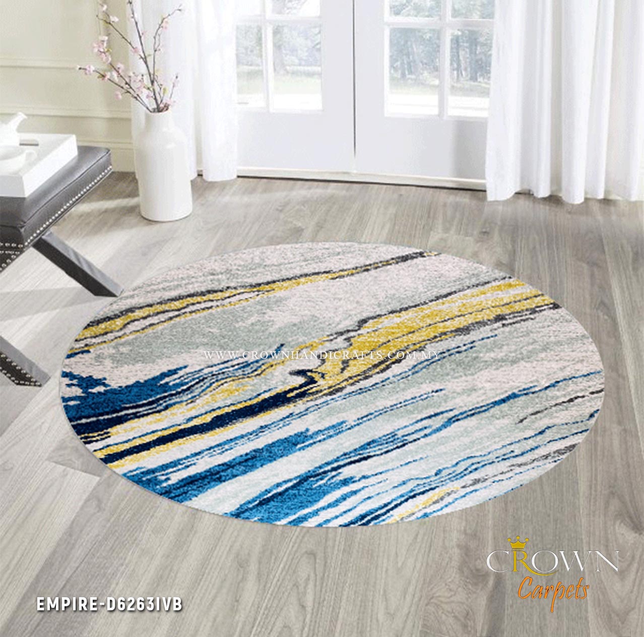 Smooth Fine Rug for Living Room Modern Design Carpet | Empire D6263IVB Round
