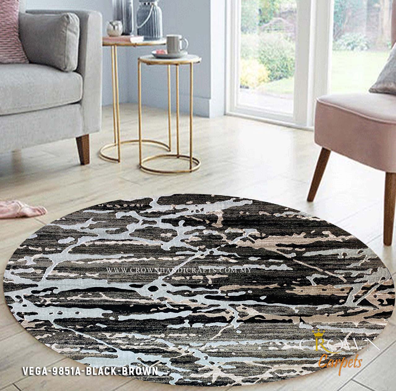 Nordic Rugs for Living Room Bedroom Scandinavian Round Carpets | Vega 9851A Black-Brown