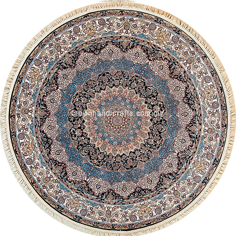 Rayan Persian Round Rug is a Time-less collection, always in fashion. Intricate patterns and designs, luxurious color combinations, billiard table smooth feel. Authentic Persian Rug Highest quality with an affordable price tag!
