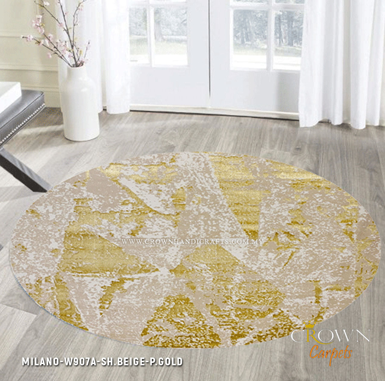 Trendy Living Room Round Carpet for Modern Sofa Interior | Milano W907A-SH.Beige P.Gold