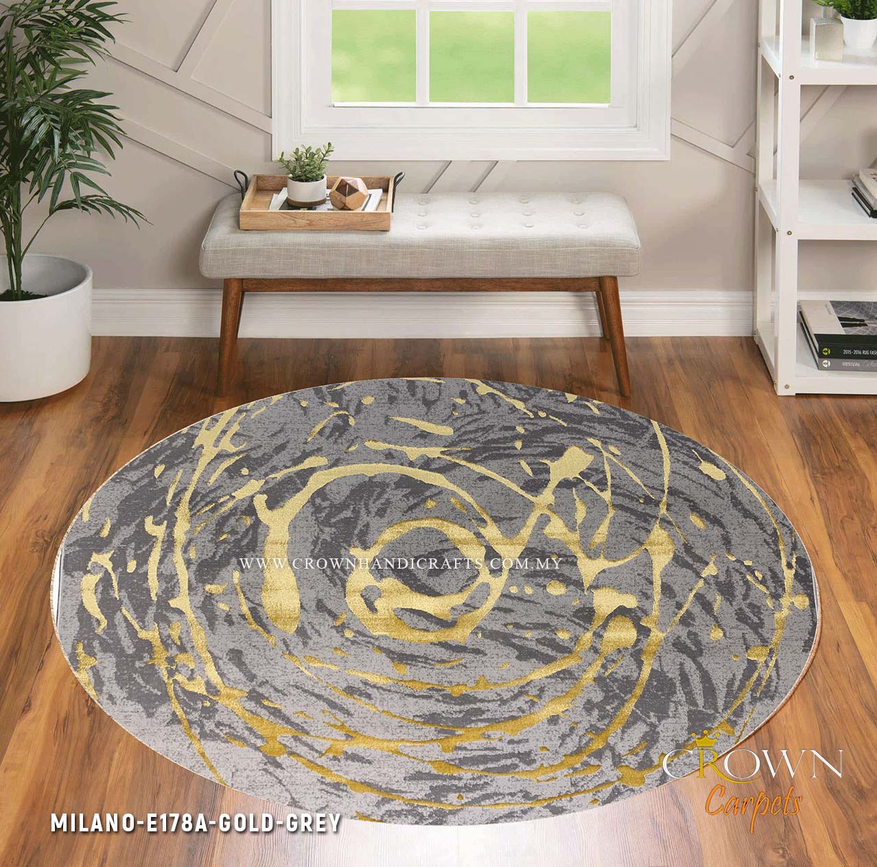 Trendy Round Living Room Carpet for Modern Sofa Interior | Milano E178A-Gold Grey