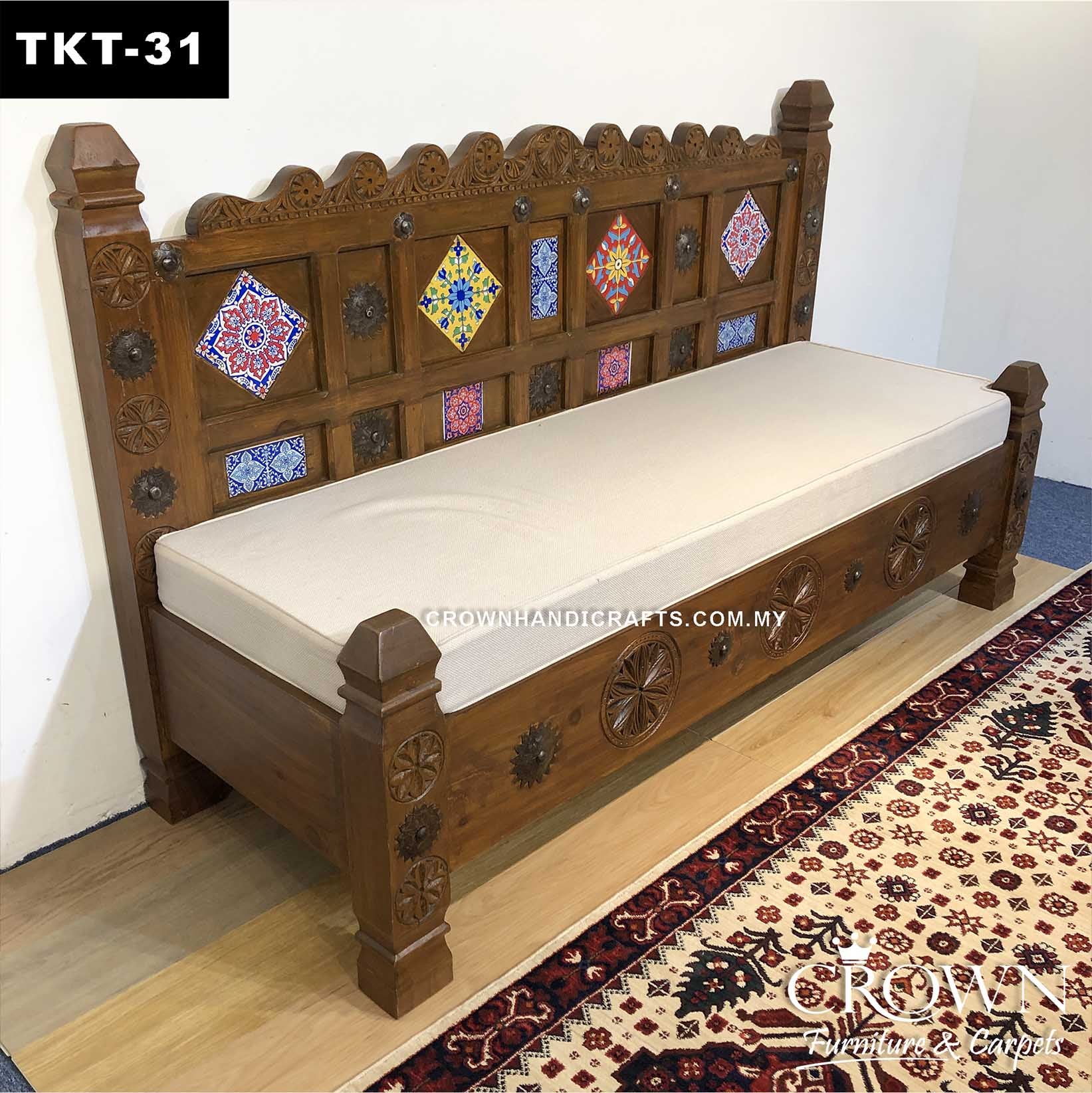 Bring Life to Your Living Room with a Bohemian Hand-Painted 3-Seater Couch and Vintage Ornamental Charm | TKT-31 (L71 W26.5 H43 Inches)