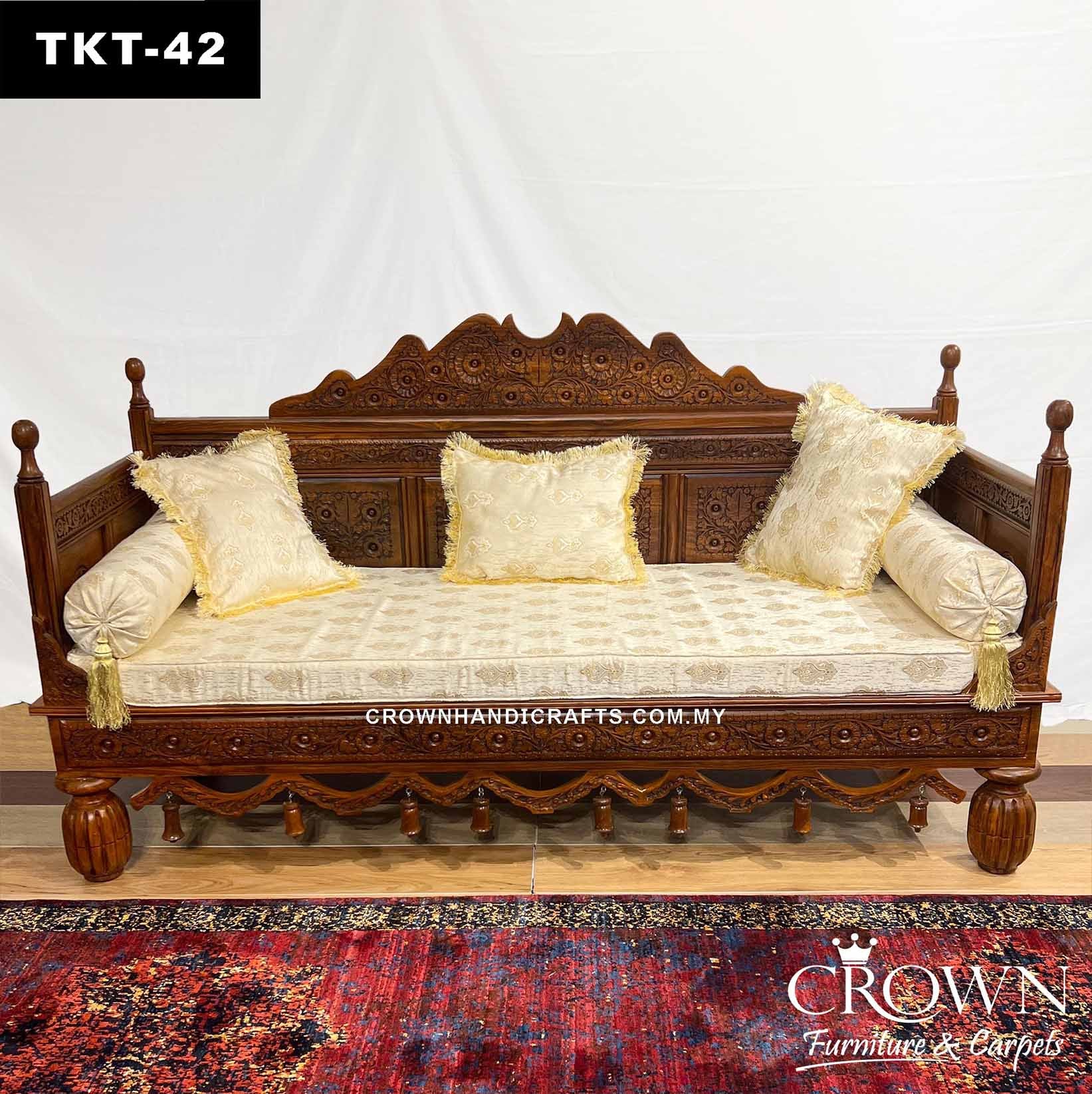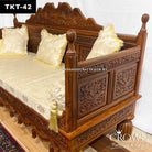 Throne-Design Takht Couch 3 Seater, Solid Wood Hand-Carved Elegance for a Living Room Makeover | Added Comfort with Fabric Cushion, Bolsters and Pillows | Wooden Sofa for Living Room | TKT-42 (L72 W27 H40 Inches)