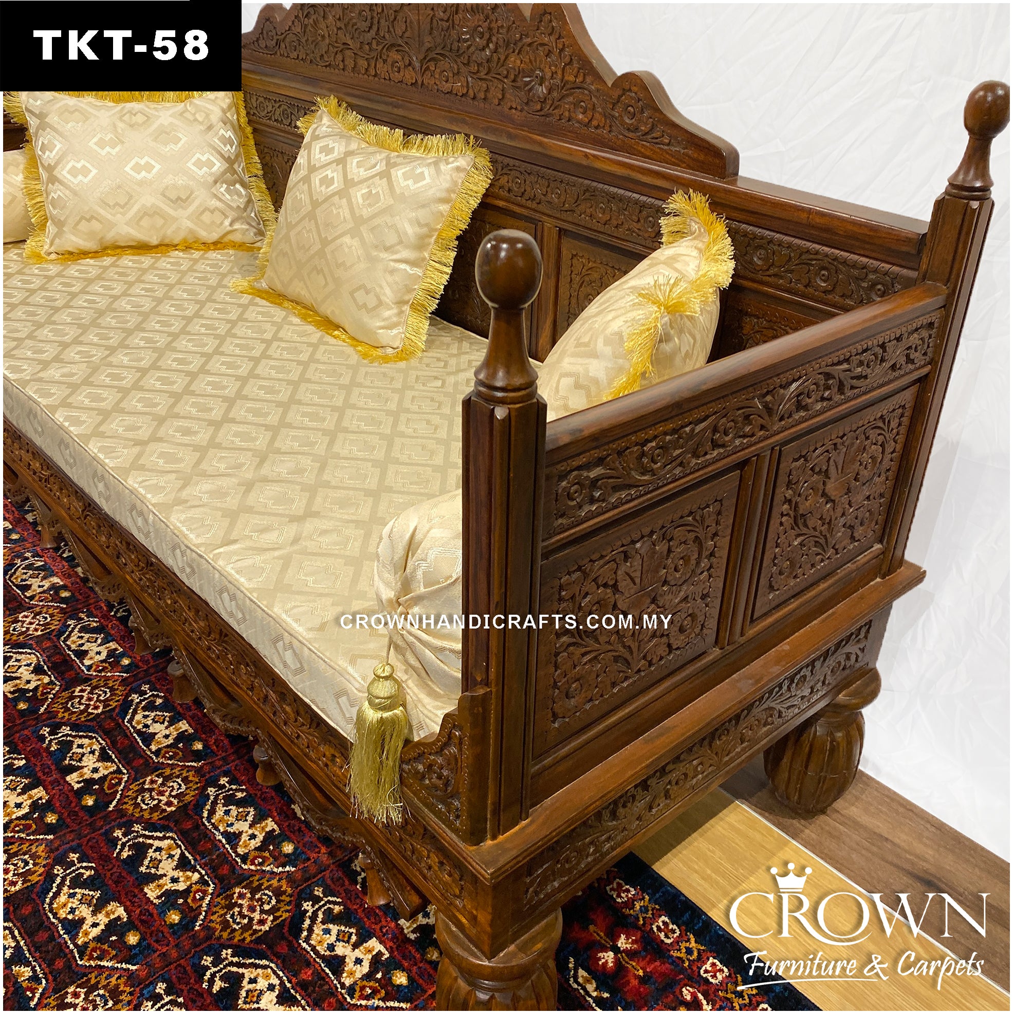 Hand-Carved 3-Seater Throne Sofa: Solid Wood Takht with Plush Cushions & Pillows | Transform Your Living Room in Regal Comfort & Elegance | TKT-58 (L72 W27 H40 Inches)