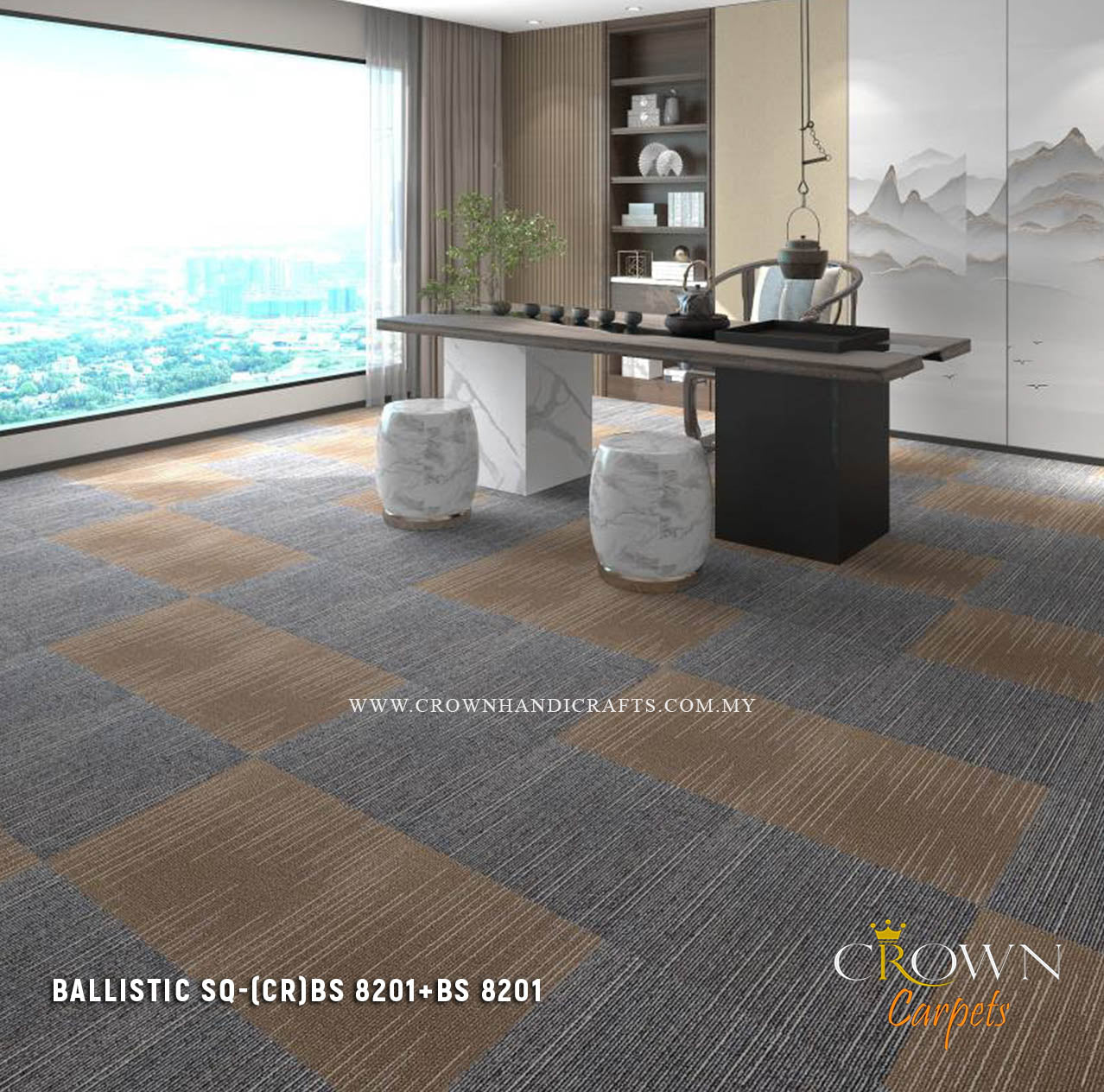 Designed for seamless installation and long-lasting performance, Ballistic Sq Carpet Tiles offer a PP surface with eco-friendly backing for stability and sustainability.