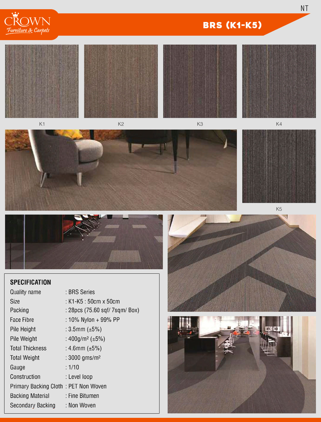 Achieve effortless style and durability with Brs Carpet Tiles, featuring a strong PP surface and eco-friendly backing for lightweight yet reliable performance.